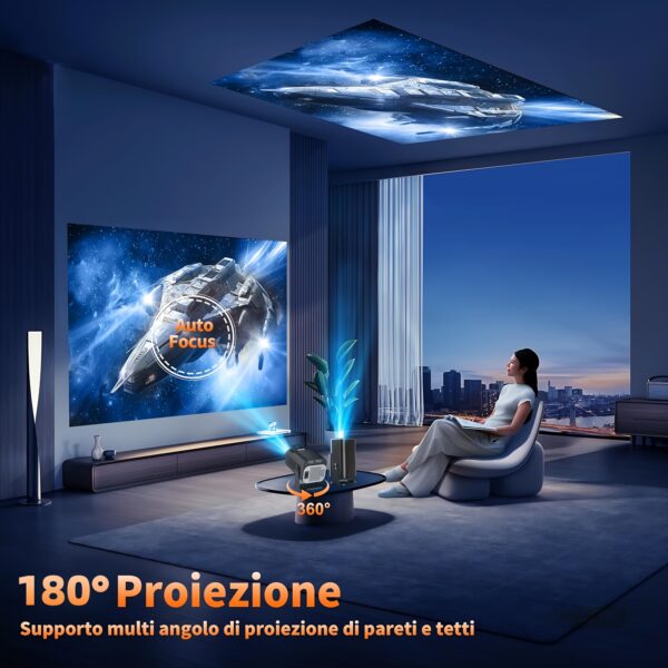 - تصميم مدمج ومحمول مع إمكانية التعديل 180 درجة: بوزنه الخفيف وحجمه الصغير، يمكنك حمله معك إلى أي مكان. ومع إمكانية تدوير الشاشة 180 درجة، يمكنك العرض على الحائط أو السقف بسهولة تامة، محولًا أي سطح إلى شاشة عرض عملاقة.