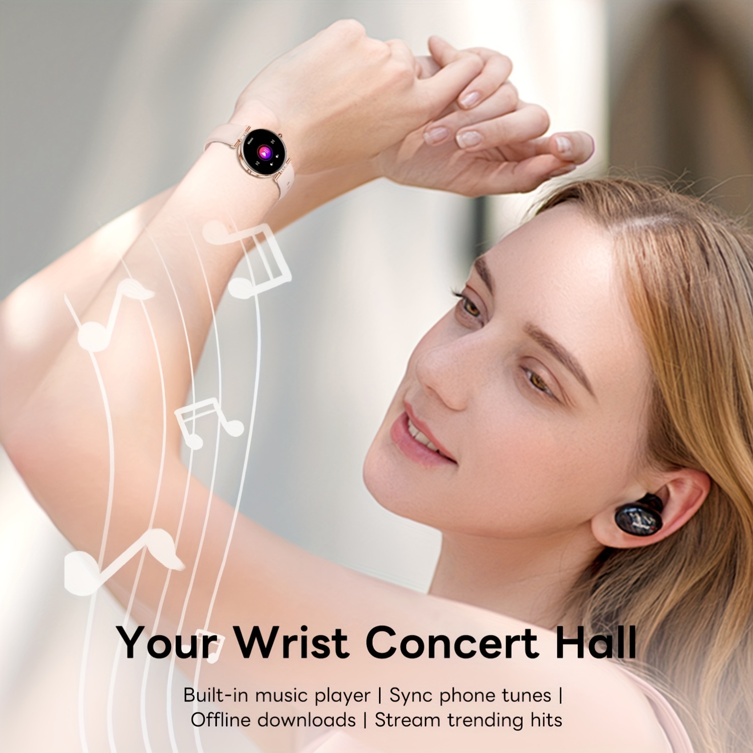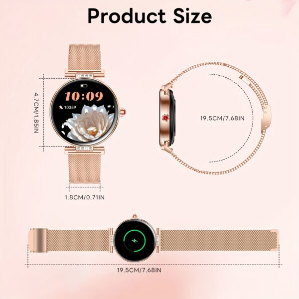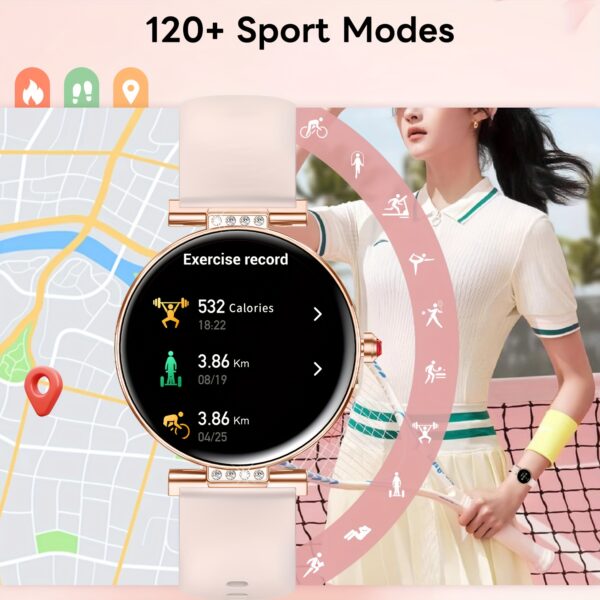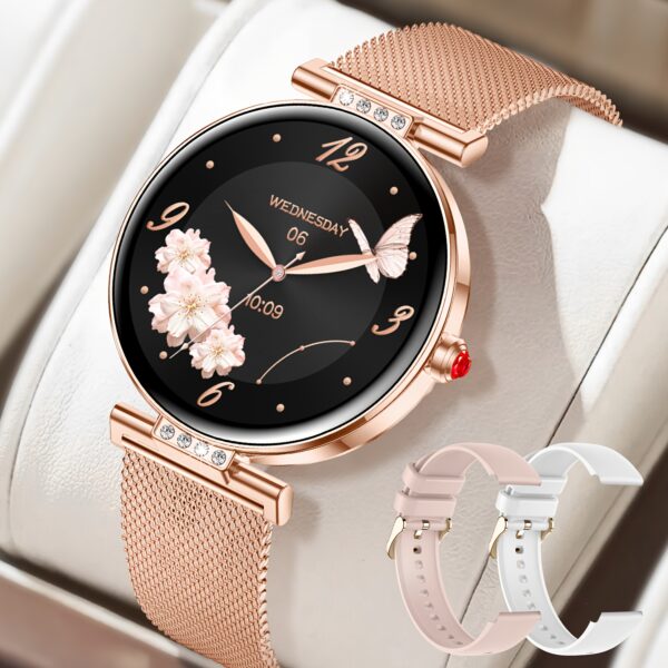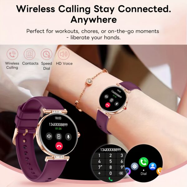 • اتصال لاسلكي متقدم وتوافق واسع: بفضل تقنية Wireless 5.0، يمكنكِ ربط ساعتك بسهولة بهاتفك الذكي (iOS & Android) لتلقي الإشعارات والتحكم في الموسيقى وغيرها، كل ذلك بسلاسة تامة.