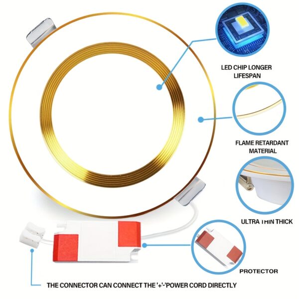 - تصميم أنيق ومدمج: بقطر 10.16 سم وتصميم غائر يندمج بسلاسة مع السقف، تتميز هذه المصابيح بحلقة زخرفية عصرية تضيف لمسة من الرقي والحداثة دون أي بروز، مما يحافظ على جماليات مساحتك.