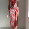 - طقم متكامل من قطعتين: يتكون الطقم من فستان سهرة جذاب مصمم بفتحة أنيقة، ومعه قطعة داخلية “ثونغ” مطابقة، لضمان تناغم مثالي وجاذبية لا تقاوم من الرأس حتى القدمين.