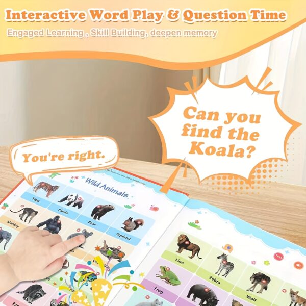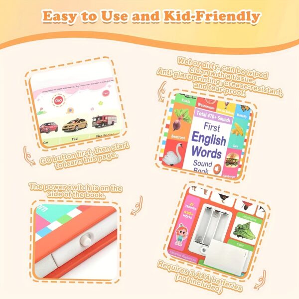 - تجربة تعلم تفاعلية: مصمم ليكون رفيقًا مثاليًا للتعلم بالمتابعة، حيث يشجع طفلك على الربط بين الصور الملونة والكلمات، مما يعزز الفهم البصري ويحفز على النطق وتطوير مهارات القراءة المبكرة. إنه بمثابة قاموس مصور حيوي يشجع على التفاعل النشط.