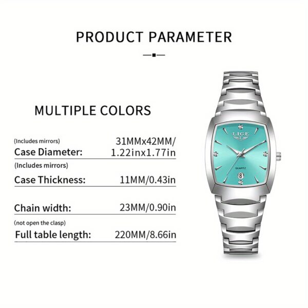 - متانة فائقة وراحة تدوم: مصنوعة من حزام فولاذي مقاوم للصدأ عالي الجودة ومحفظة من سبيكة معدنية قوية، لتضمن لك الأناقة والتحمل في الاستخدام اليومي المريح.