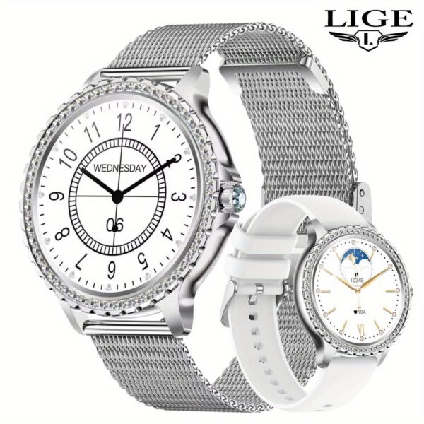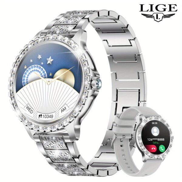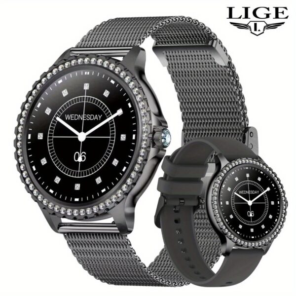 اكتشف الأناقة العصرية مع ساعة LIGE الذكية، تحفة تكنولوجية مصممة لتواكب إيقاع حياتك اليومية. تتميز هذه الساعة بتصميمها الفاخر المرصع بالكريستال وهيكل معدني متين، مما يجعلها الإكسسوار المثالي الذي يجمع بين الجمال والأداء الفائق للرجال والنساء على حد سواء. مع شاشة لمس كاملة بحجم 1.83 بوصة، توفر لك ساعة LIGE تجربة تفاعلية سلسة وممتعة.