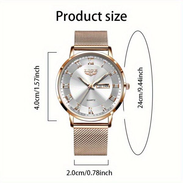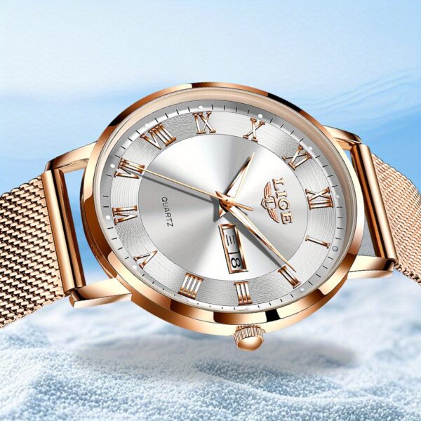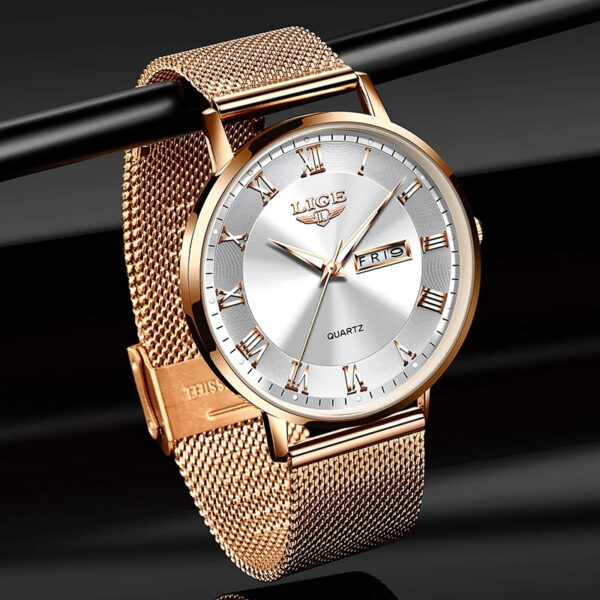 - حركة كوارتز دقيقة: تضمن لكِ ساعة LIGE دقة لا مثيل لها في عرض الوقت، لتكوني دائمًا في الموعد وتتمتعي بموثوقية لا تضاهى.