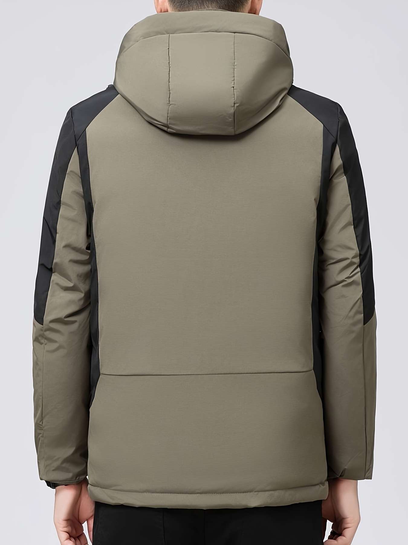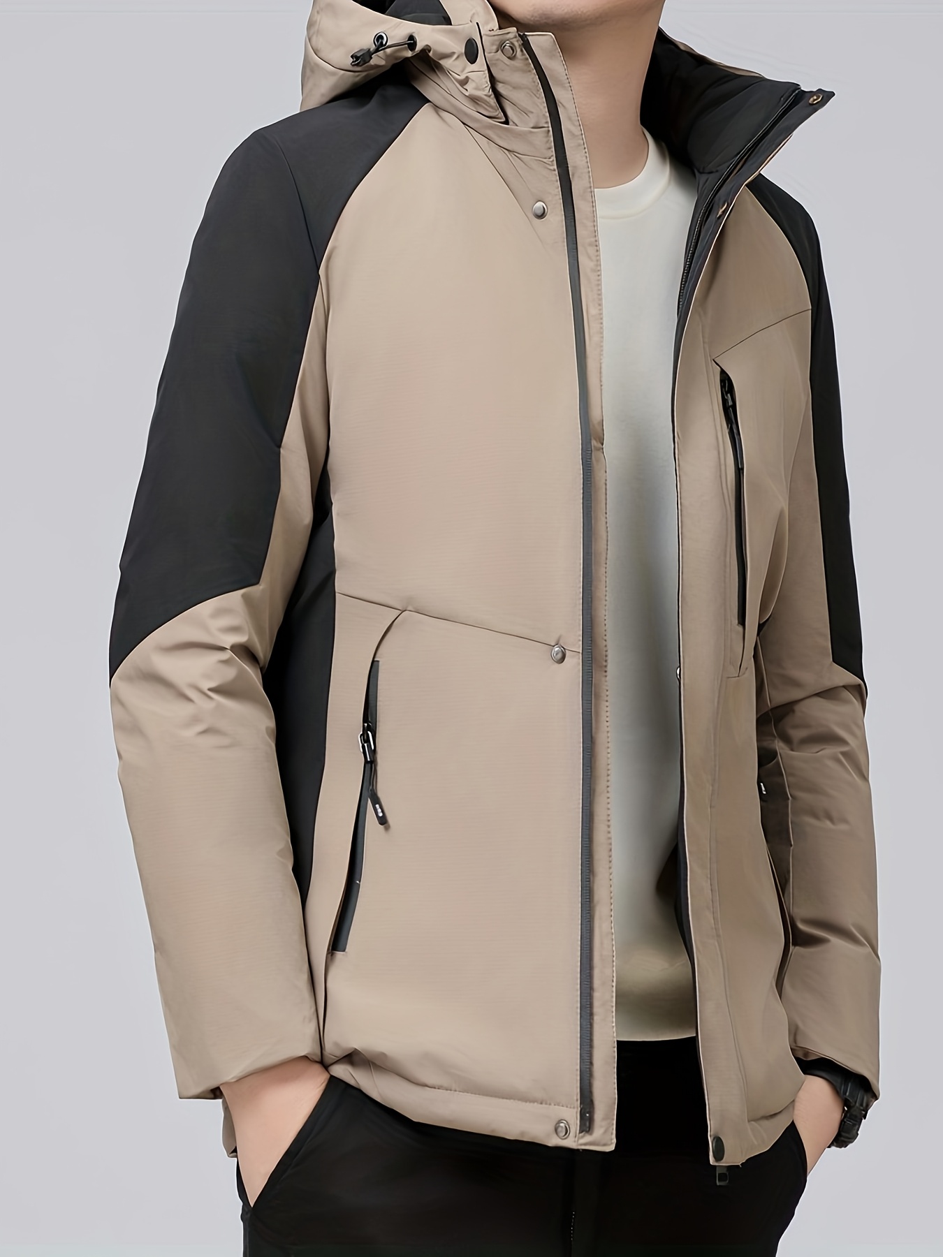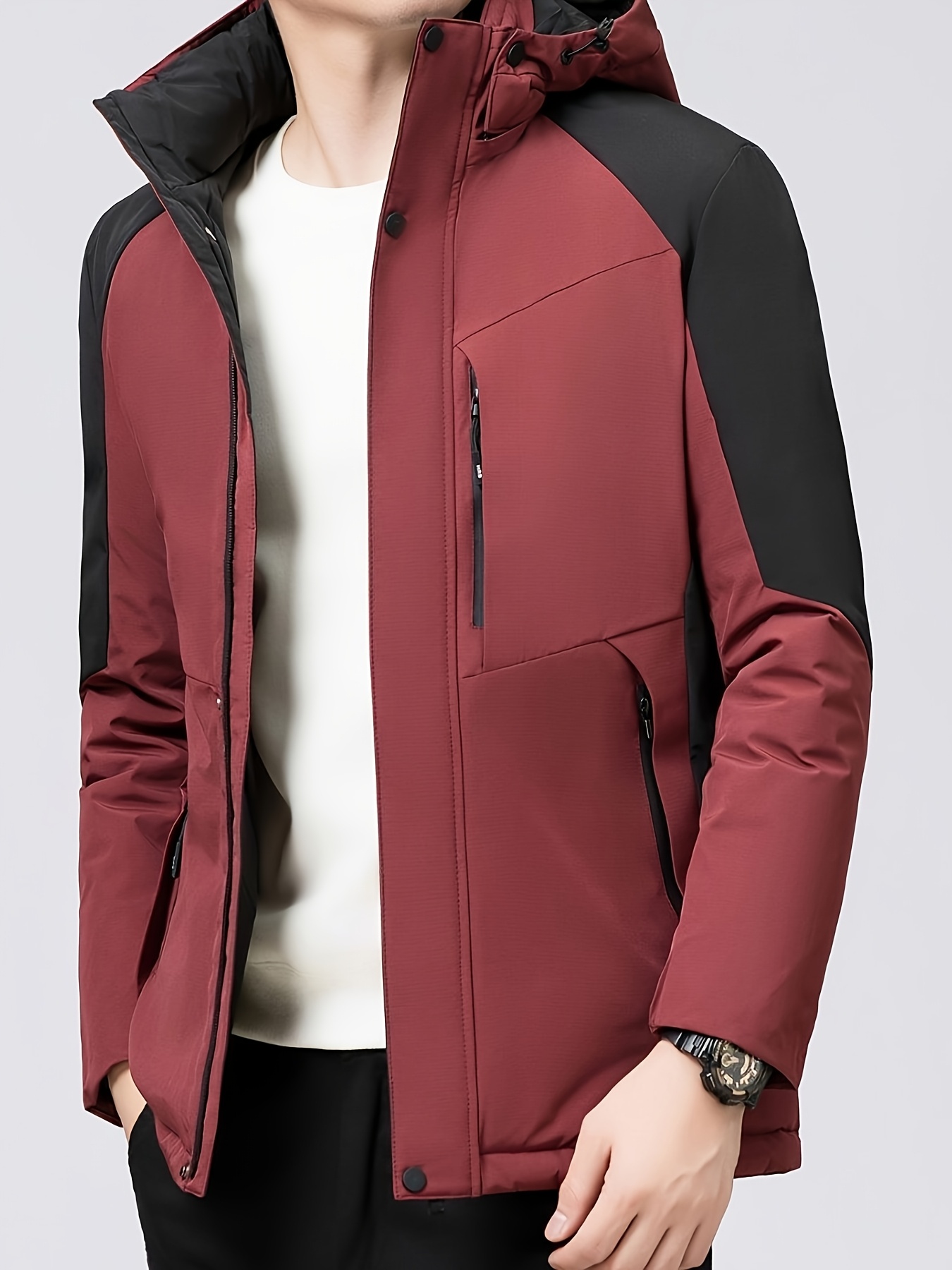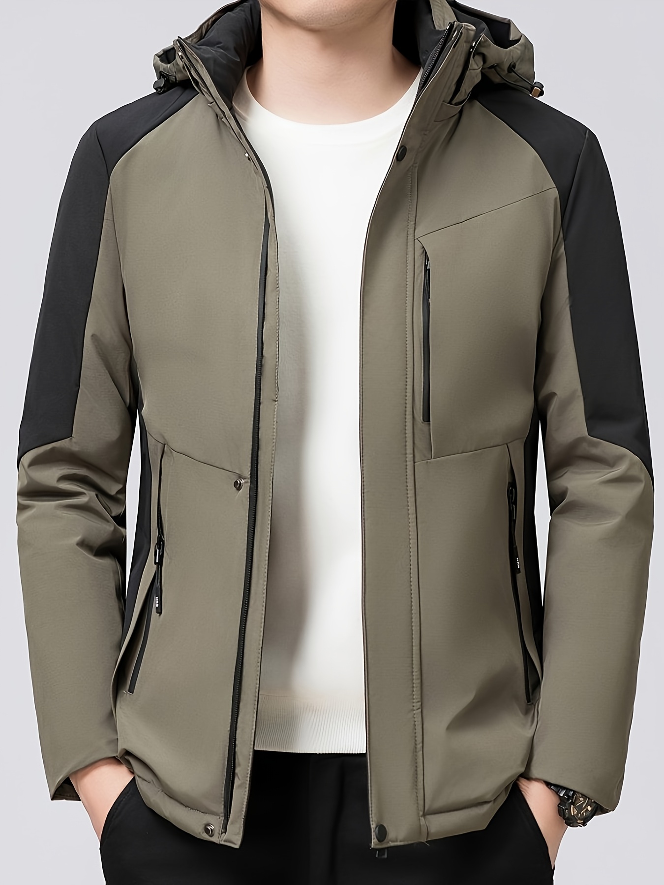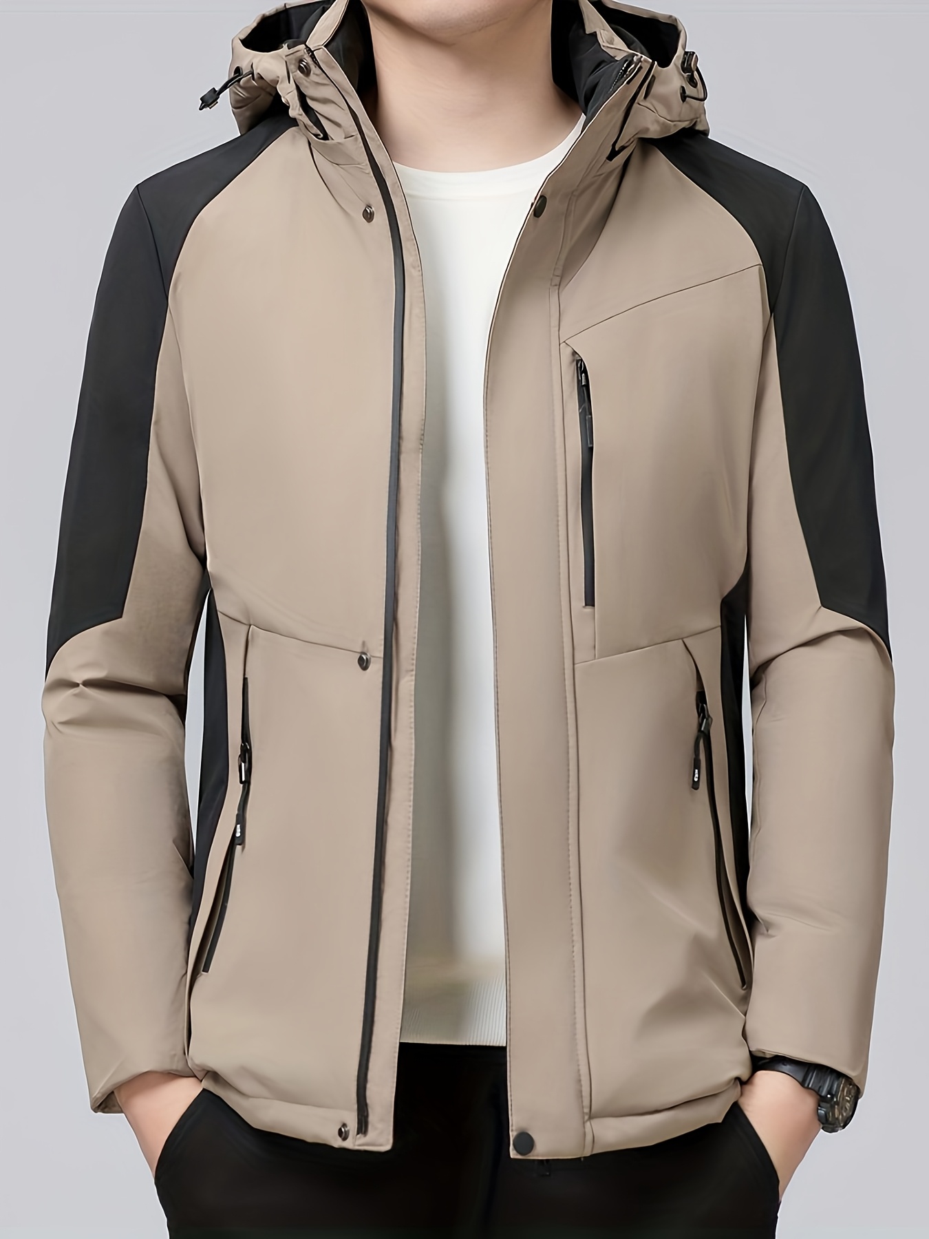 • غطاء رأس مريح وواقي: مزود بغطاء رأس متصل يوفر حماية إضافية لرأسك وأذنيك من الرياح الباردة والأمطار الخفيفة، لتبقى مرتاحًا في جميع الظروف الجوية.