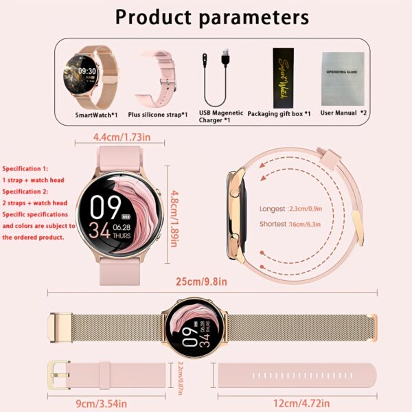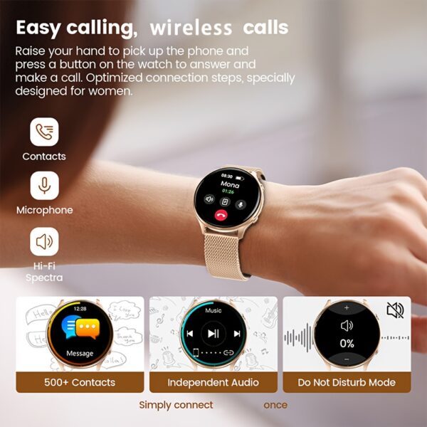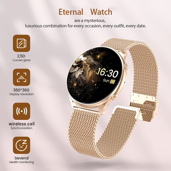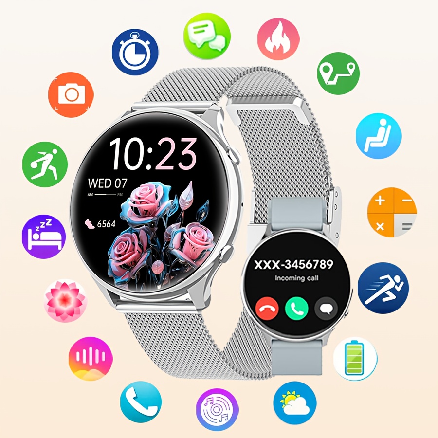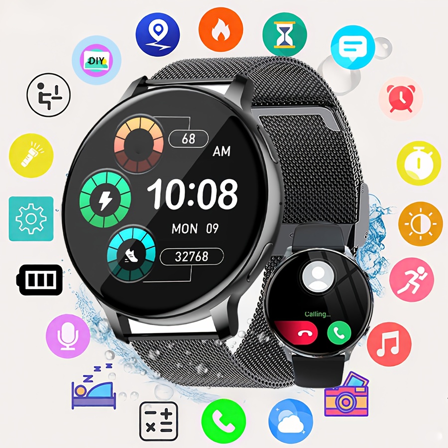 • تصميم فائق الجودة: هيكل الساعة مصنوع من سبيكة معدنية متينة، مع حزام سيليكون مريح ومقاوم، وشاشة بنسبة 90% توفر تجربة بصرية غامرة وواضحة.