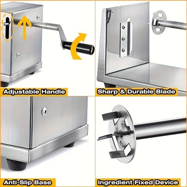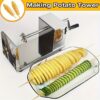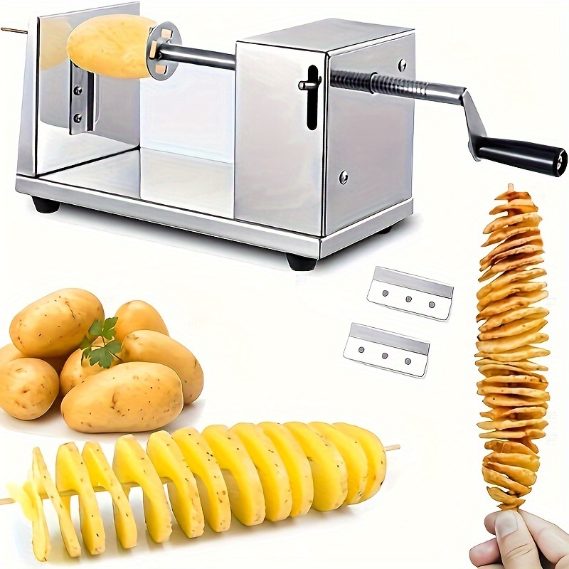 - تنوع لا مثيل له 3 في 1: لا تكتفِ بالشرائح العادية! قم بتقطيع البطاطس إلى لفائف تورنادو مذهلة، أو شرائح حلزونية فنية، أو حتى بطاطس مقلية كلاسيكية تناسب جميع الأذواق.