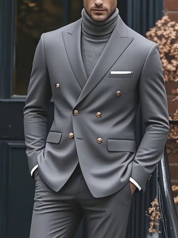 - تصميم متكامل: بدلة رجالية فاخرة مكونة من قطعتين، سترة أنيقة وبنطال بقصة مثالية، لتوفر لك إطلالة متناسقة وجاهزة للتألق في أي مناسبة.