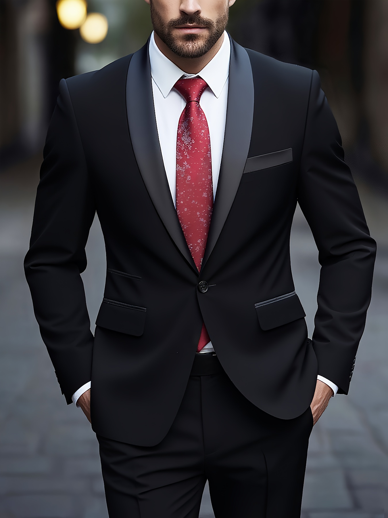 - متعددة الاستخدامات: مثالية لمختلف المناسبات الرسمية والخاصة؛ حفلات الزفاف، التجمعات، الحفلات الراقصة، وحتى بيئة العمل الاحترافية. بدلة واحدة لجميع لحظاتك الهامة.