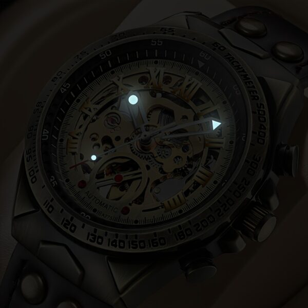 - حركة ميكانيكية أوتوماتيكية: استمتع بدقة لا تتوقف تعمل بحركة معصمك، وداعًا للبطاريات والقلق من نفاد الطاقة.