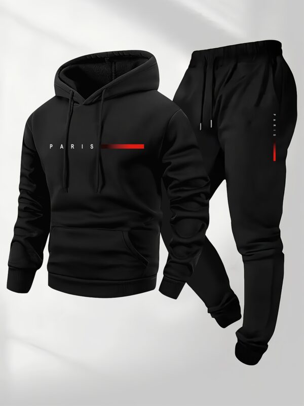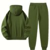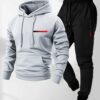 - إطلالة متكاملة وجاهزة: يأتيك كطقم متناسق يجمع بين هودي بقلنسوة عملية ورباط سحب قابل للتعديل، وبنطال رياضي مريح، مما يضمن لك إطلالة كاجوال متكاملة ومترابطة بسهولة تامة.
