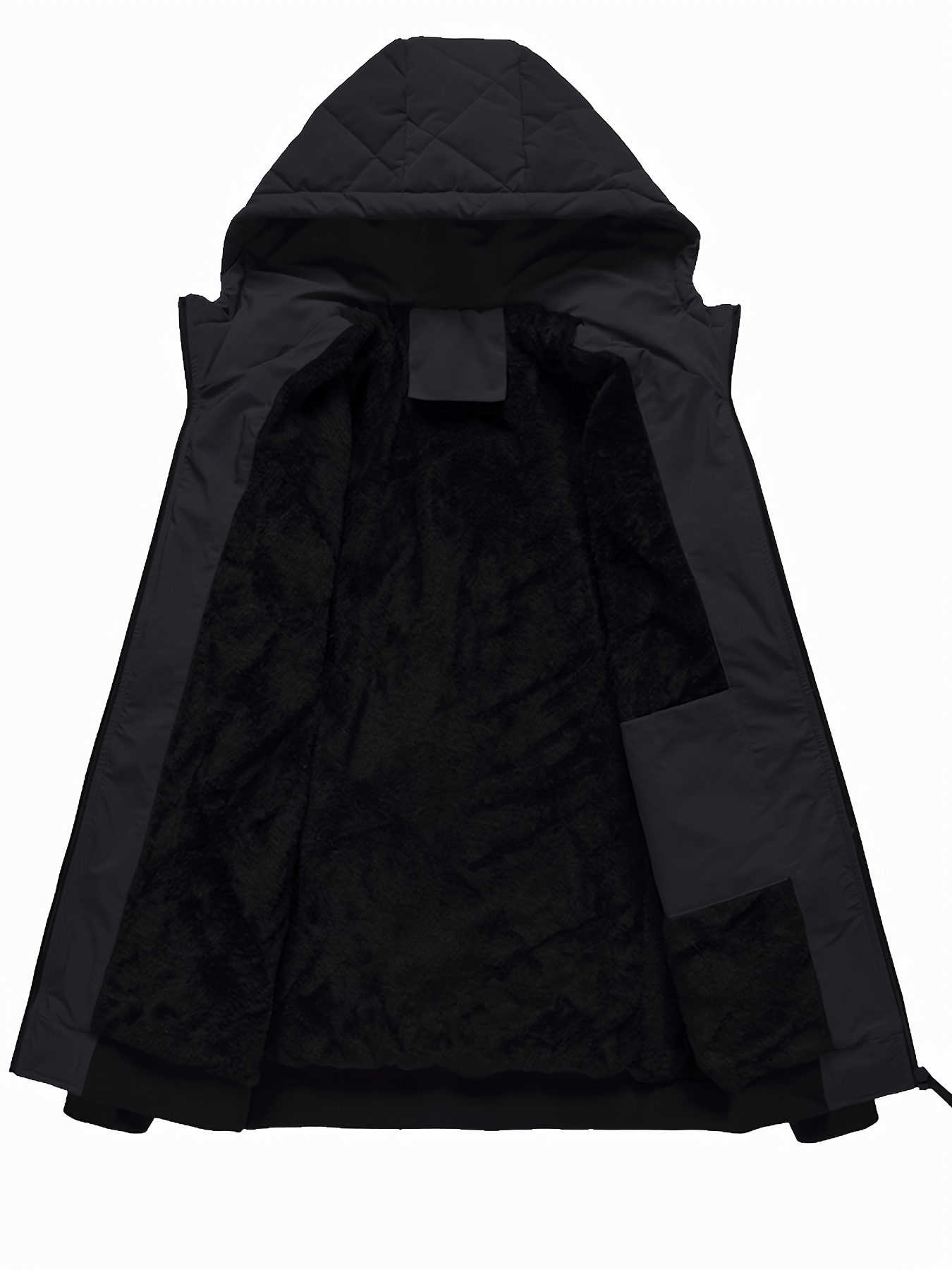 • حماية شاملة وتصميم عملي: مزود بقبعة مدمجة لتوفير حماية إضافية للرأس والأذنين من الرياح والأمطار الخفيفة، وسحاب أمامي متين لسهولة الارتداء والخلع، بالإضافة إلى جيوب عملية وآمنة لحفظ متعلقاتك الشخصية الأساسية بمتناول يدك.