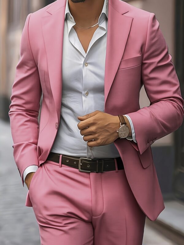 • طقم متكامل وجاهز: تتضمن البدلة جاكيتًا مصممًا بعناية وبنطالًا بقصة عصرية، مما يمنحك إطلالة موحدة ومتناسقة بكل سهولة دون عناء البحث عن تنسيقات.
