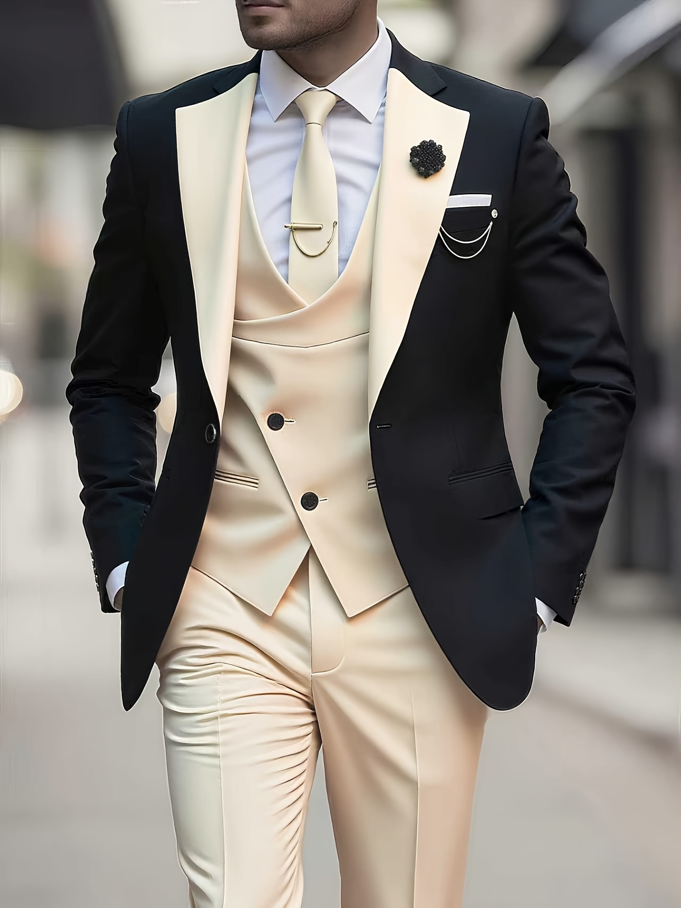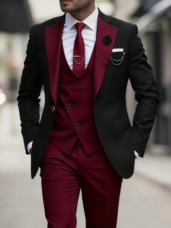 - تصميم متكامل وفاخر بثلاث قطع: استمتع بإطلالة متناسقة لا تشوبها شائبة بفضل الفيست الأنيق بياقة، القميص الكلاسيكي، والبنطال المريح، المصممة جميعها لتتكامل مع بعضها البعض بسلاسة، وتقدم لك مظهراً جاهزاً يلفت الأنظار.