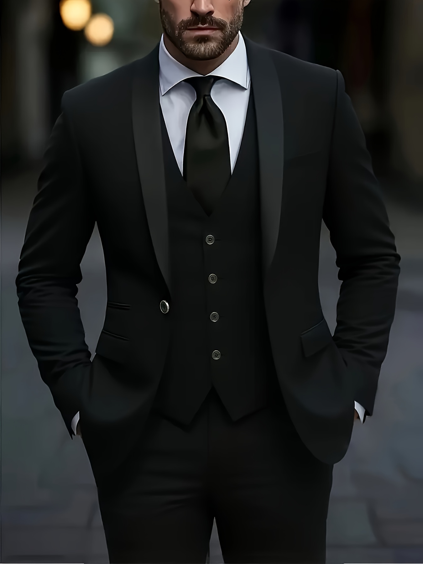 ارتقِ بإطلالتك إلى مستوى آخر من الفخامة والرقي مع طقم البدلة الرجالية الفاخر هذا، المصمم خصيصاً للرجل الذي يتمتع بحضور مهيب وقامة شامخة. سواء كنت تستعد لحفل زفاف، اجتماع عمل مهم، أو أي مناسبة تتطلب منك التألق، يمنحك هذا الطقم المتكامل الثقة والأناقة التي تستحقها، مع اهتمام دقيق بالتفاصيل التي تضمن لك الراحة والتميز.