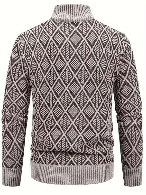 - نقشة الألماس الهندسية الجذابة: يزدان بنمط هندسي فريد بنقشة الألماس تضفي عليه طابعاً عصرياً وملفتاً للنظر، ليبرز أناقتك وتميزك في كل تفصيل ويجعلك محط الأنظار.
