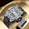 - تصميم عصري ومتين: تجمع الساعة بين المتانة والأناقة مع إطارها المصنوع من سبيكة معدنية قوية وحزامها المطاطي المريح الذي يضمن لك الراحة طوال اليوم. شكلها الدائري الكبير يضفي لمسة من الجرأة والجاذبية.