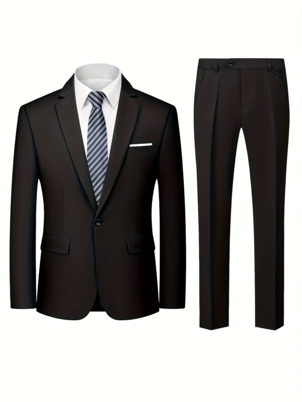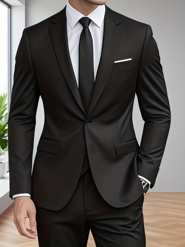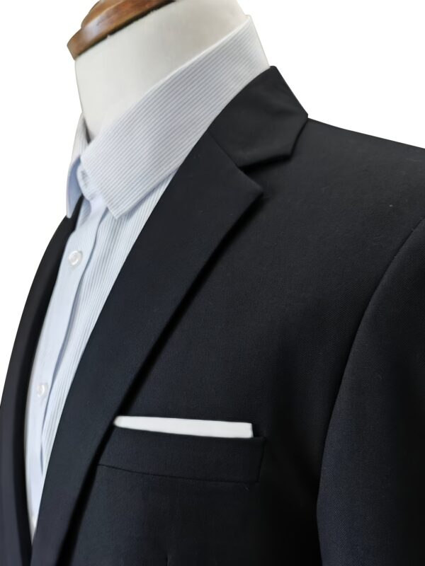 - طقم متكامل وعصري: تتكون من جاكيت وبنطال بقصة منتظمة، بلون موحد وتصميم يبرز تفاصيل الياقة (القلاب)، ليمنحك مظهرًا احترافيًا وعصريًا في آن واحد.