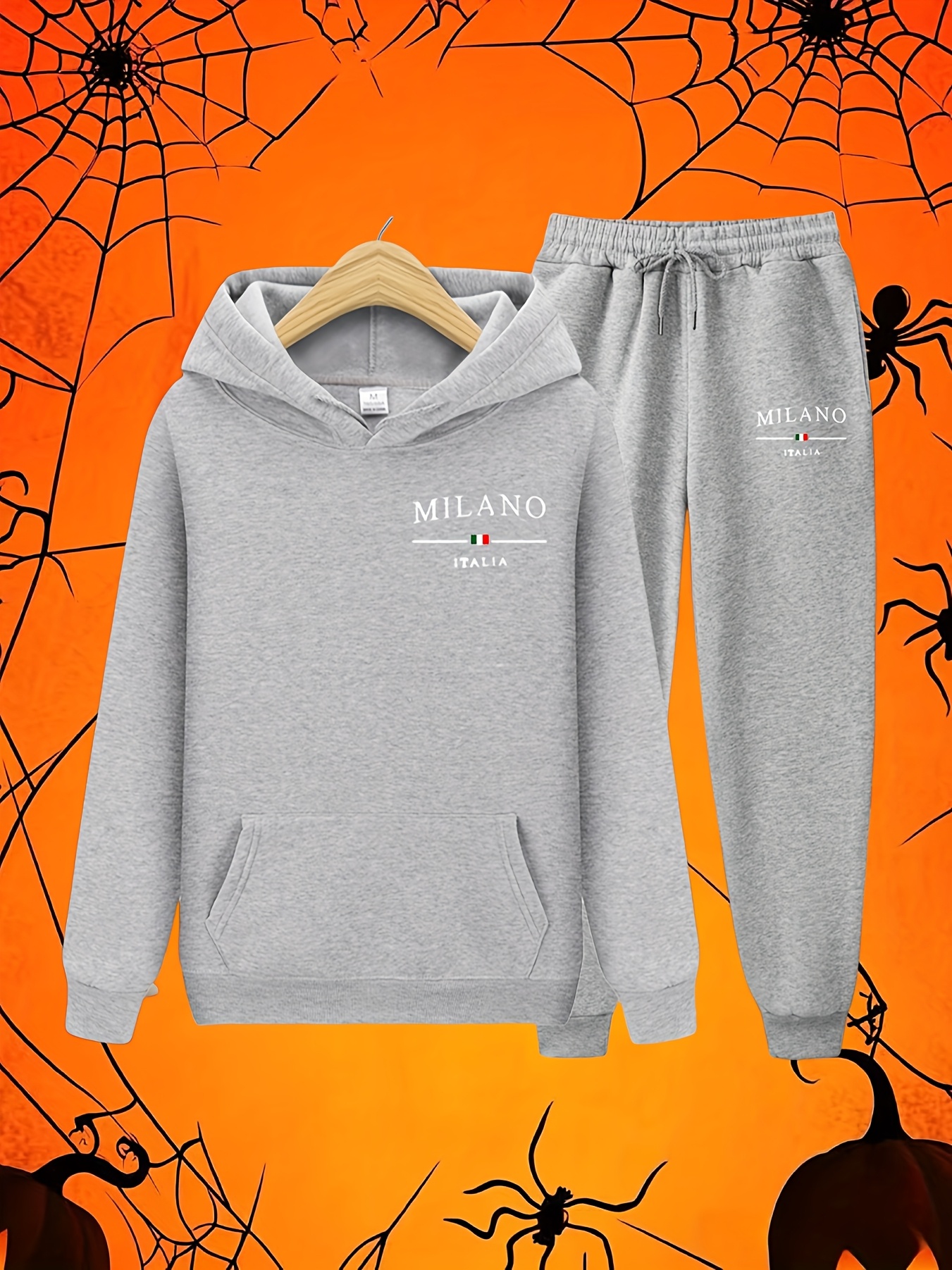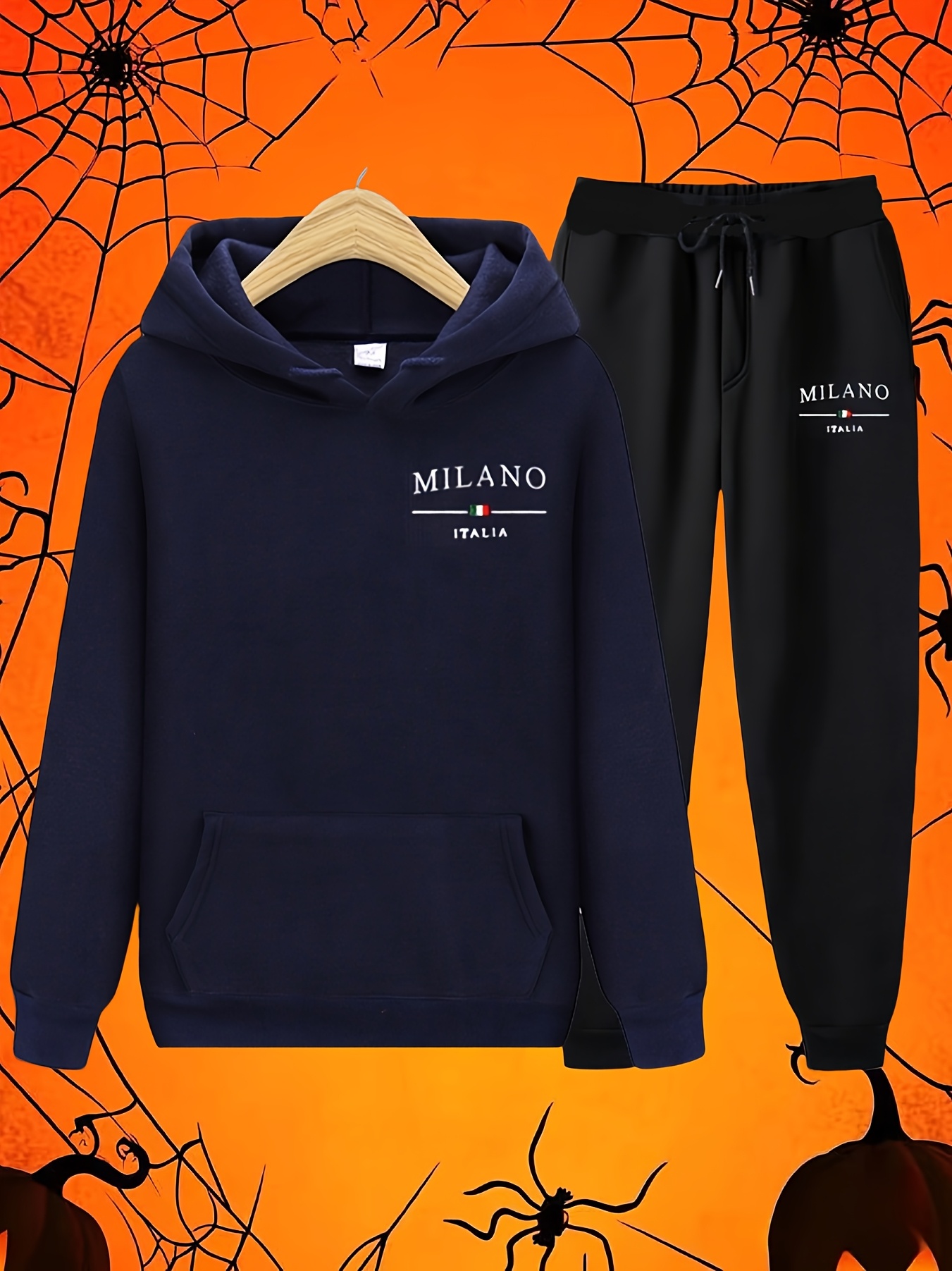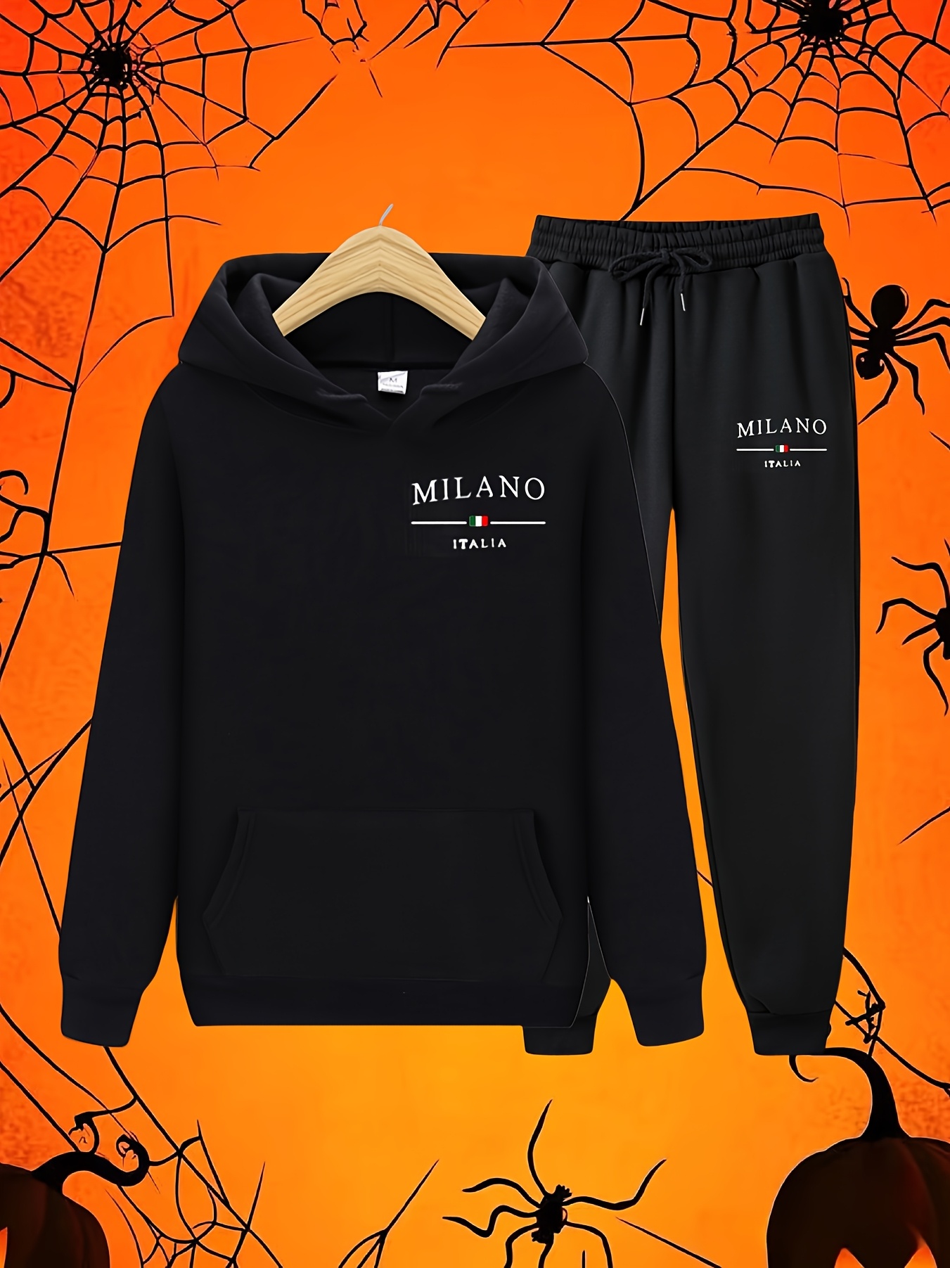 - تصميم عصري وجذاب: يتميز بطبعة حروف MILANO العصرية التي تضفي لمسة أناقة فريدة، مع تصميم هودي رياضي أنيق وبنطال مريح برباط قابل للتعديل، ليمنحك مظهراً مميزاً وعصرياً.