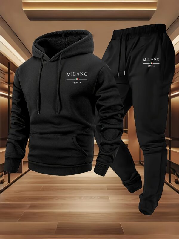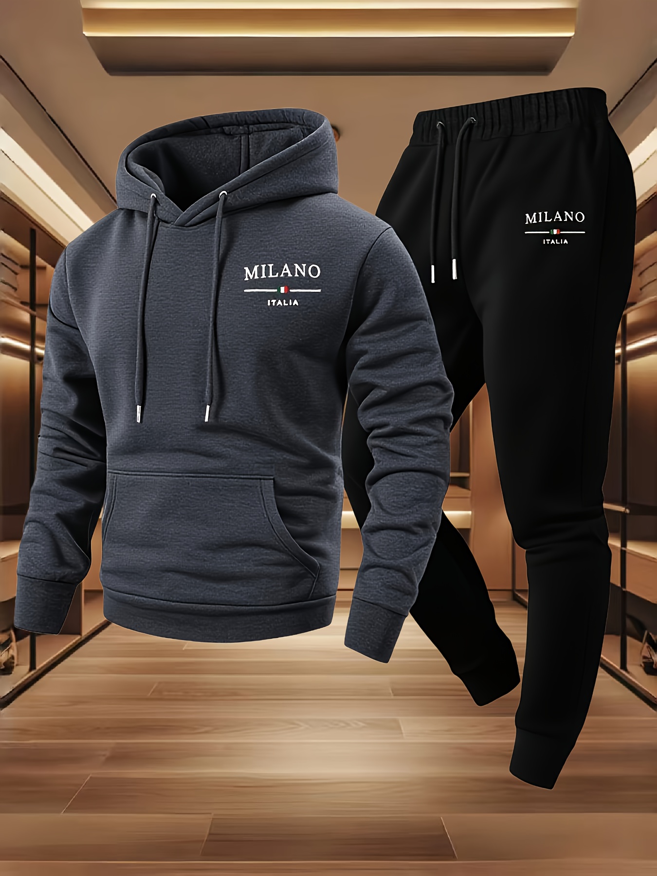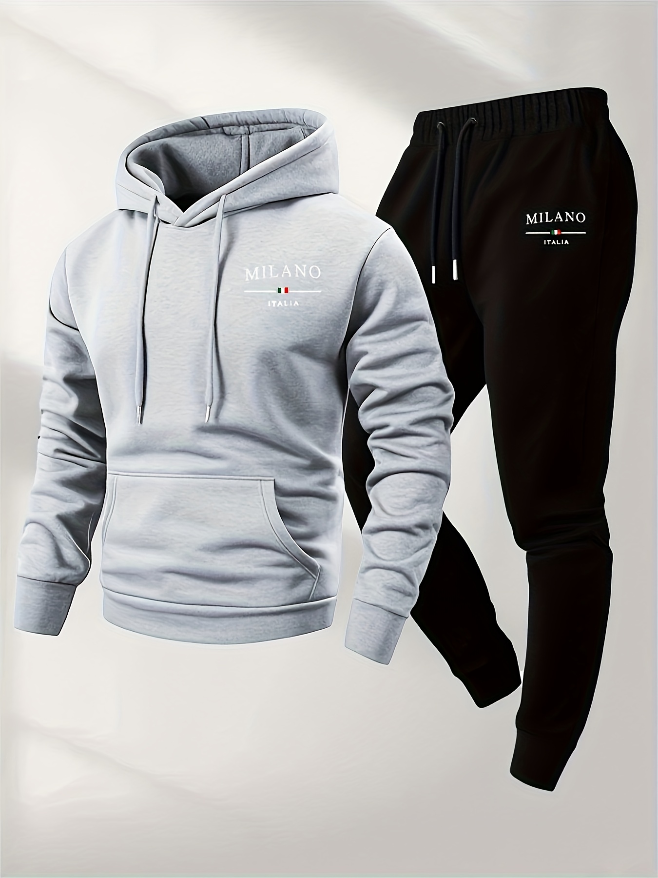 - تصميم عصري وجذاب: يتميز بطبعة حروف MILANO العصرية التي تضفي لمسة أناقة فريدة، مع تصميم هودي رياضي أنيق وبنطال مريح برباط قابل للتعديل، ليمنحك مظهراً مميزاً وعصرياً.