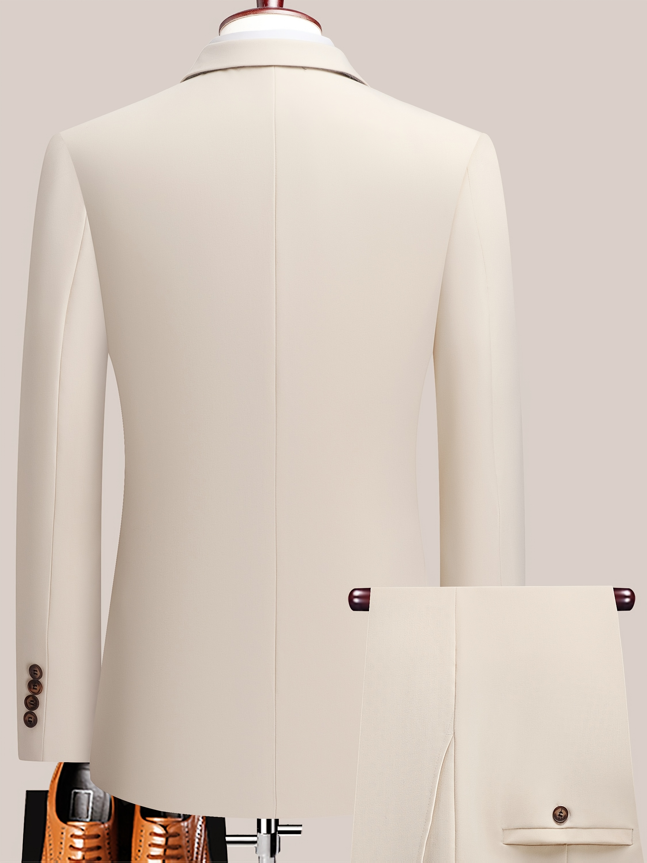 - اللون الراقي والتصميم الكلاسيكي: بلون بيج سادة يُضفي لمسة من الرقي والسهولة في التنسيق مع مختلف الإكسسوارات، مع تصميم زرين وياقة “Peak Lapels” لجاذبية لا مثيل لها.