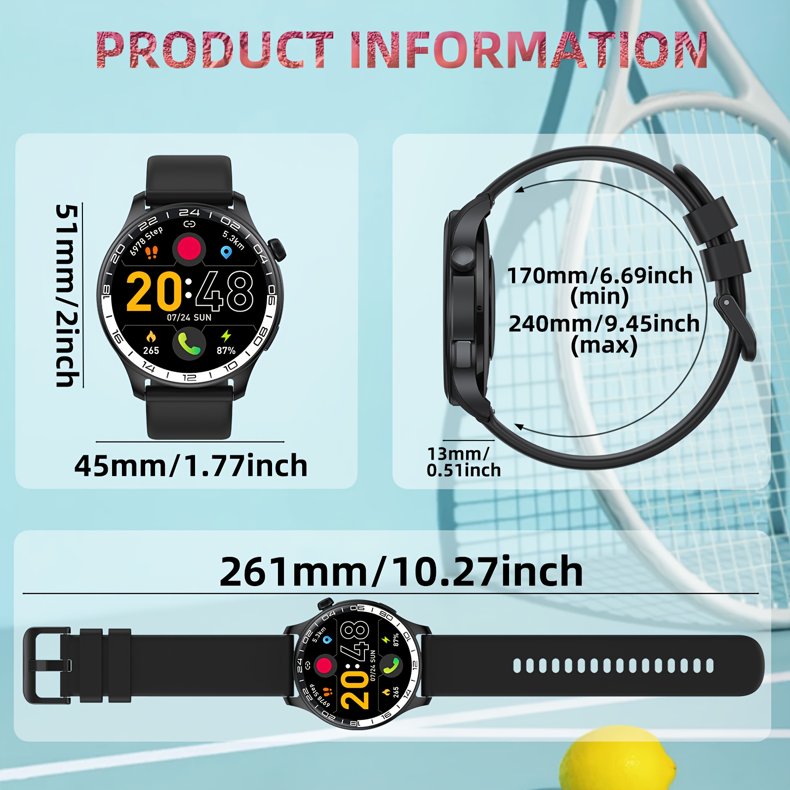 - تصميم فاخر ومتين: هيكل الساعة المصنوع من سبيكة معدنية عالية الجودة يمنحها مظهرًا أنيقًا ومتانة استثنائية، بينما يوفر حزام السيليكون راحة لا مثيل لها طوال اليوم.