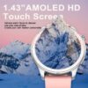 - شاشة AMOLED عالية الدقة: استمتع بتجربة بصرية لا مثيل لها مع شاشة AMOLED النابضة بالحياة بدقة 480 بكسل، التي تغطي 98% من واجهة الساعة لتقديم ألوان غنية وتفاصيل واضحة للغاية.