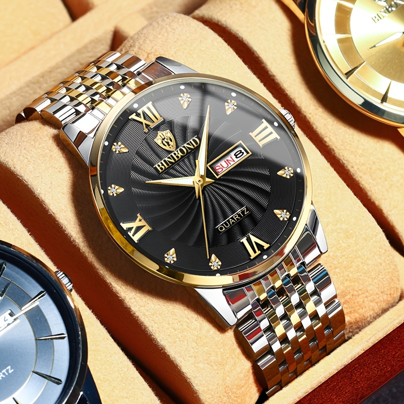 - تصميم متين وفاخر: مصنوعة بالكامل من الفولاذ المقاوم للصدأ عالي الجودة للسوار والعلبة، مما يضمن لك متانة استثنائية ومظهراً براقاً يدوم طويلاً.