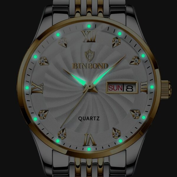 - رؤية واضحة في الظلام: عقارب تضيء في الظلام لتتمكن من قراءة الوقت بسهولة ووضوح حتى في بيئات الإضاءة المنخفضة.