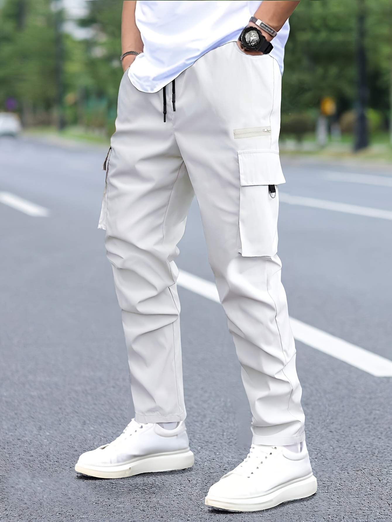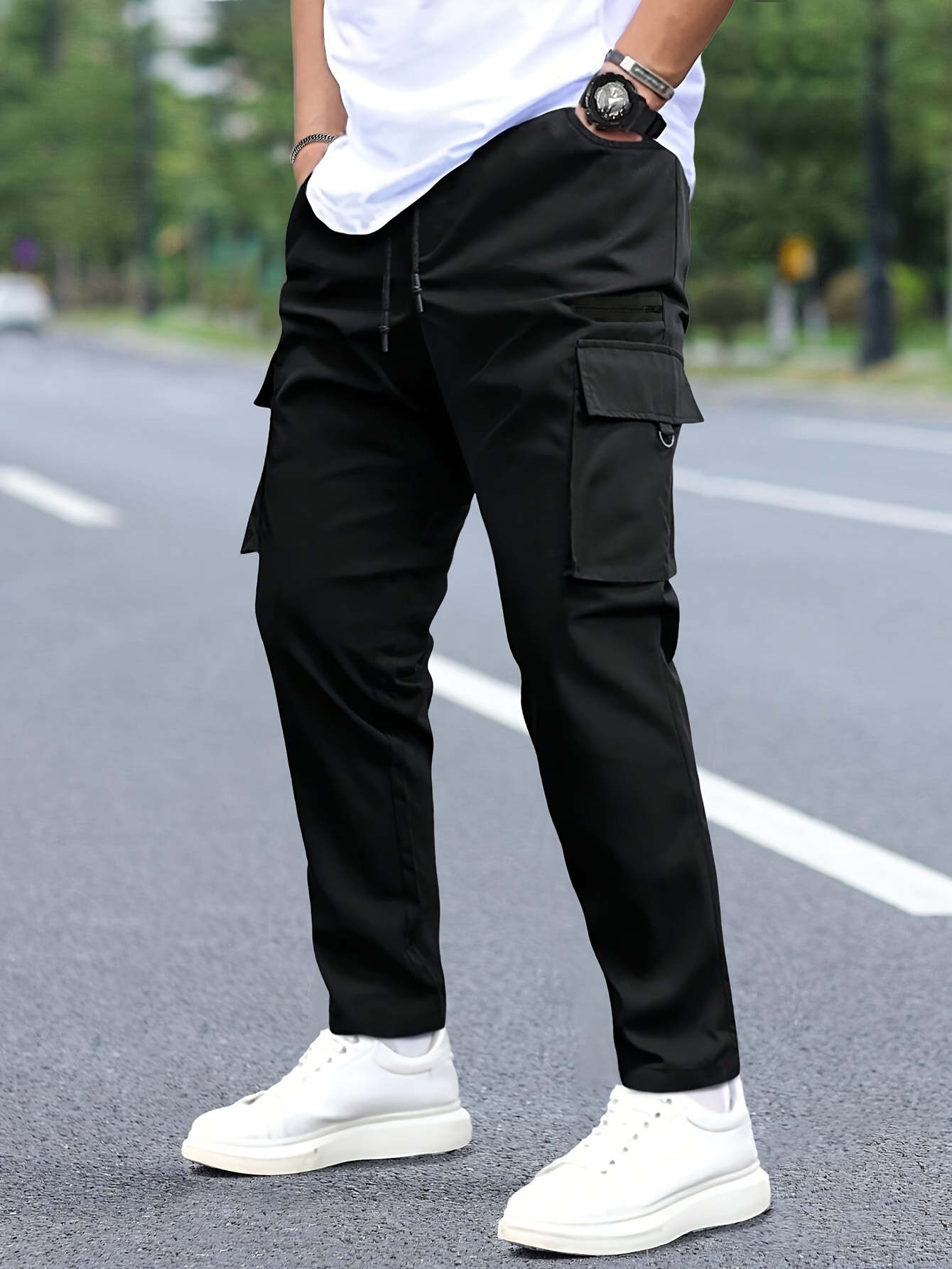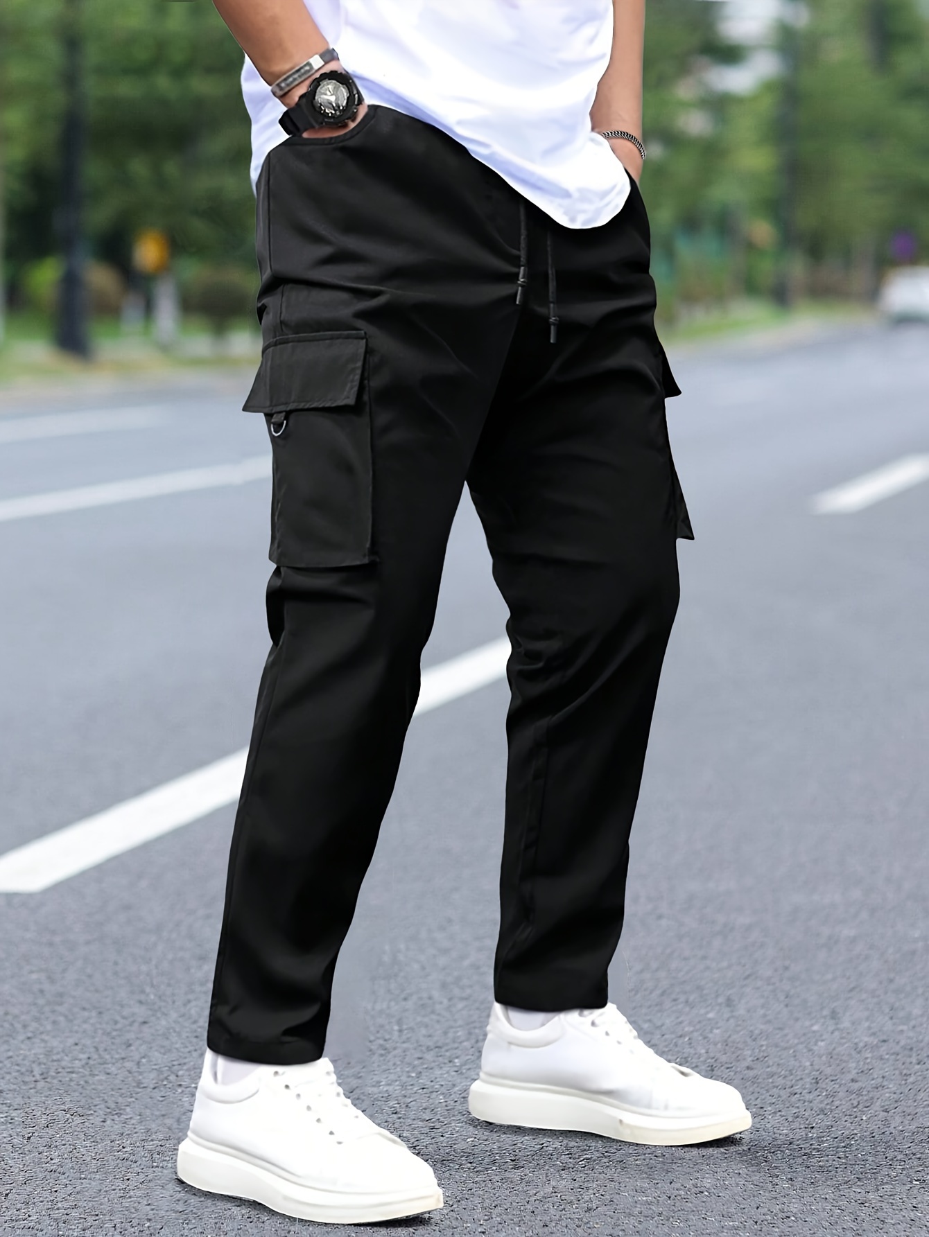- تصميم الكارجو متعدد الجيوب: مزود بجيوب عملية وواسعة لتخزين هاتفك، مفاتيحك، ومحفظتك بأمان وسهولة، مع إضافة لمسة أناقة عصرية لوجهتك.