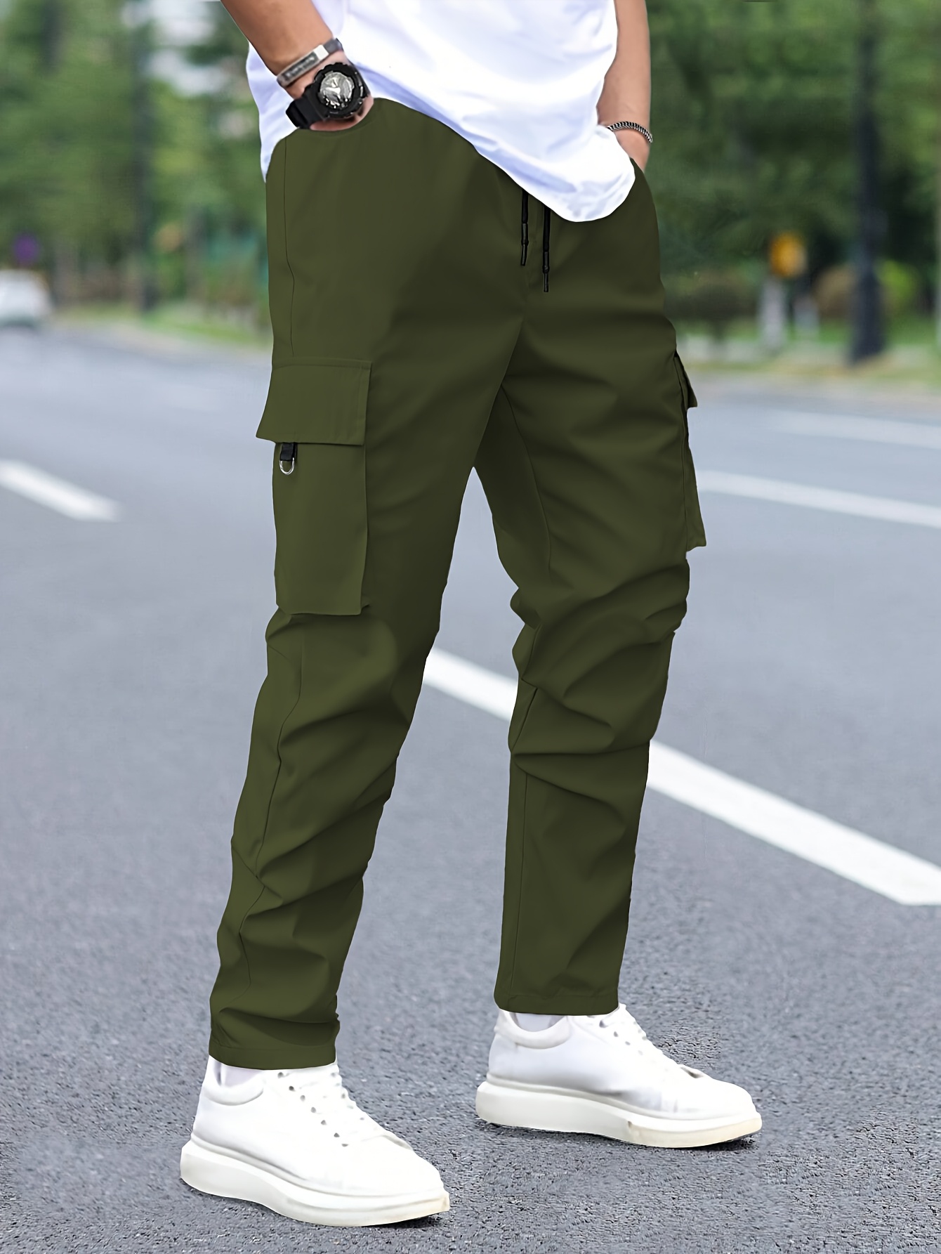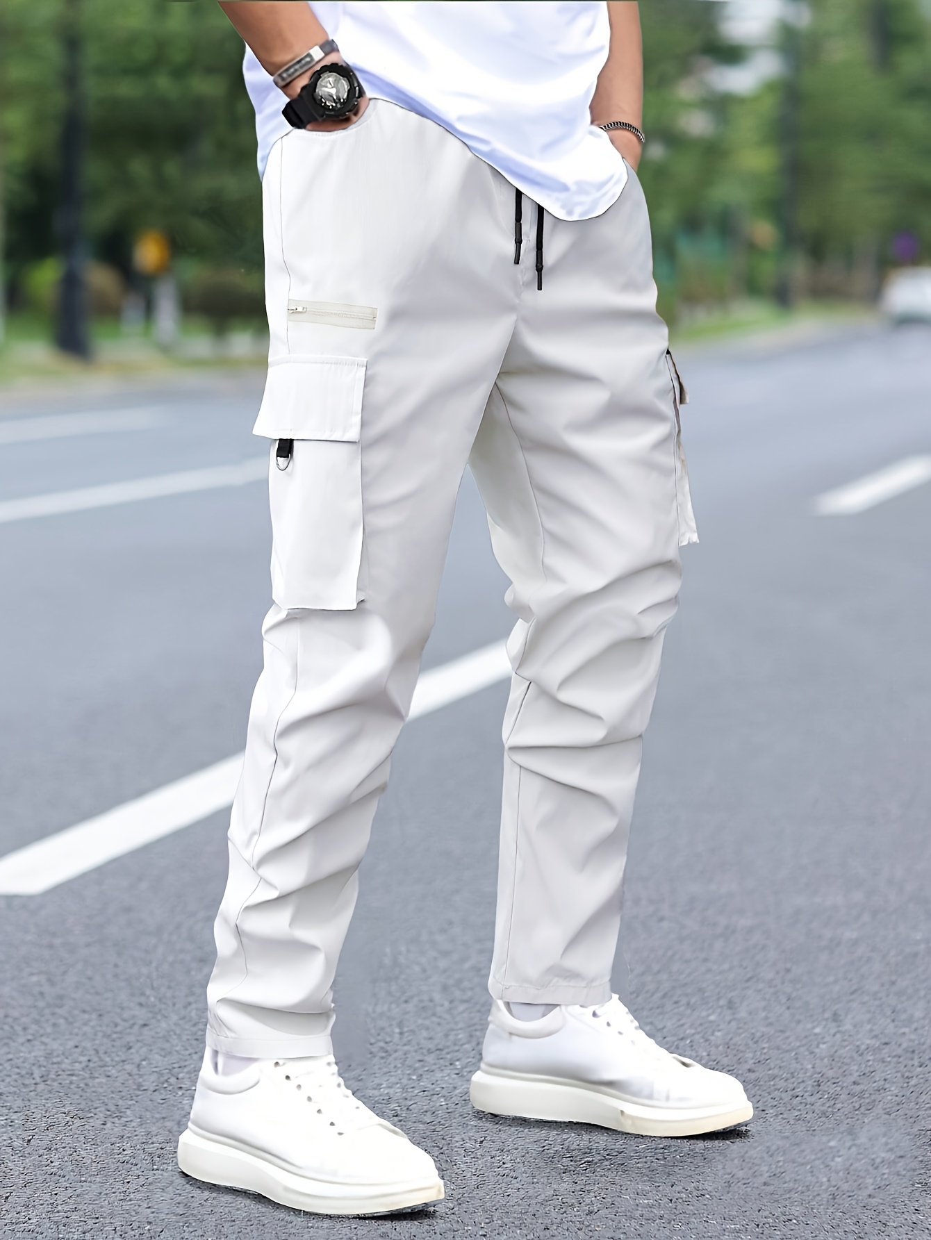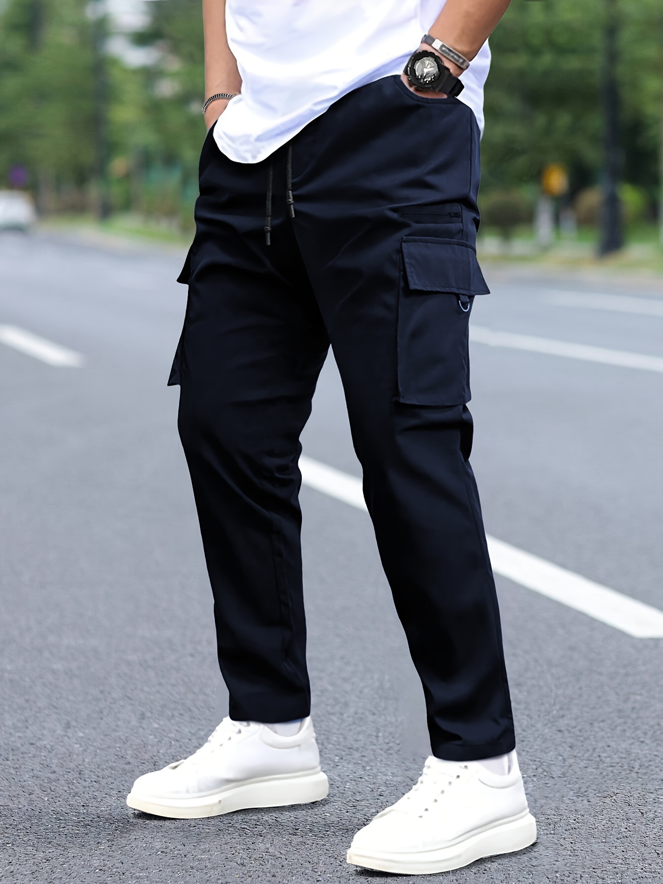 - تصميم الكارجو متعدد الجيوب: مزود بجيوب عملية وواسعة لتخزين هاتفك، مفاتيحك، ومحفظتك بأمان وسهولة، مع إضافة لمسة أناقة عصرية لوجهتك.