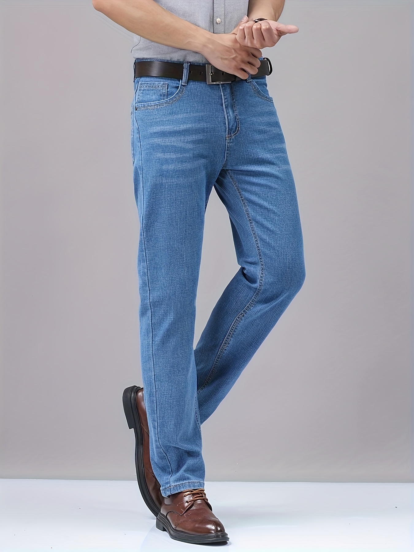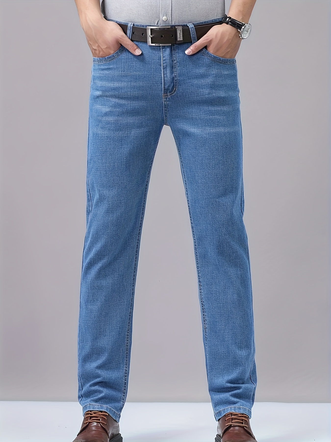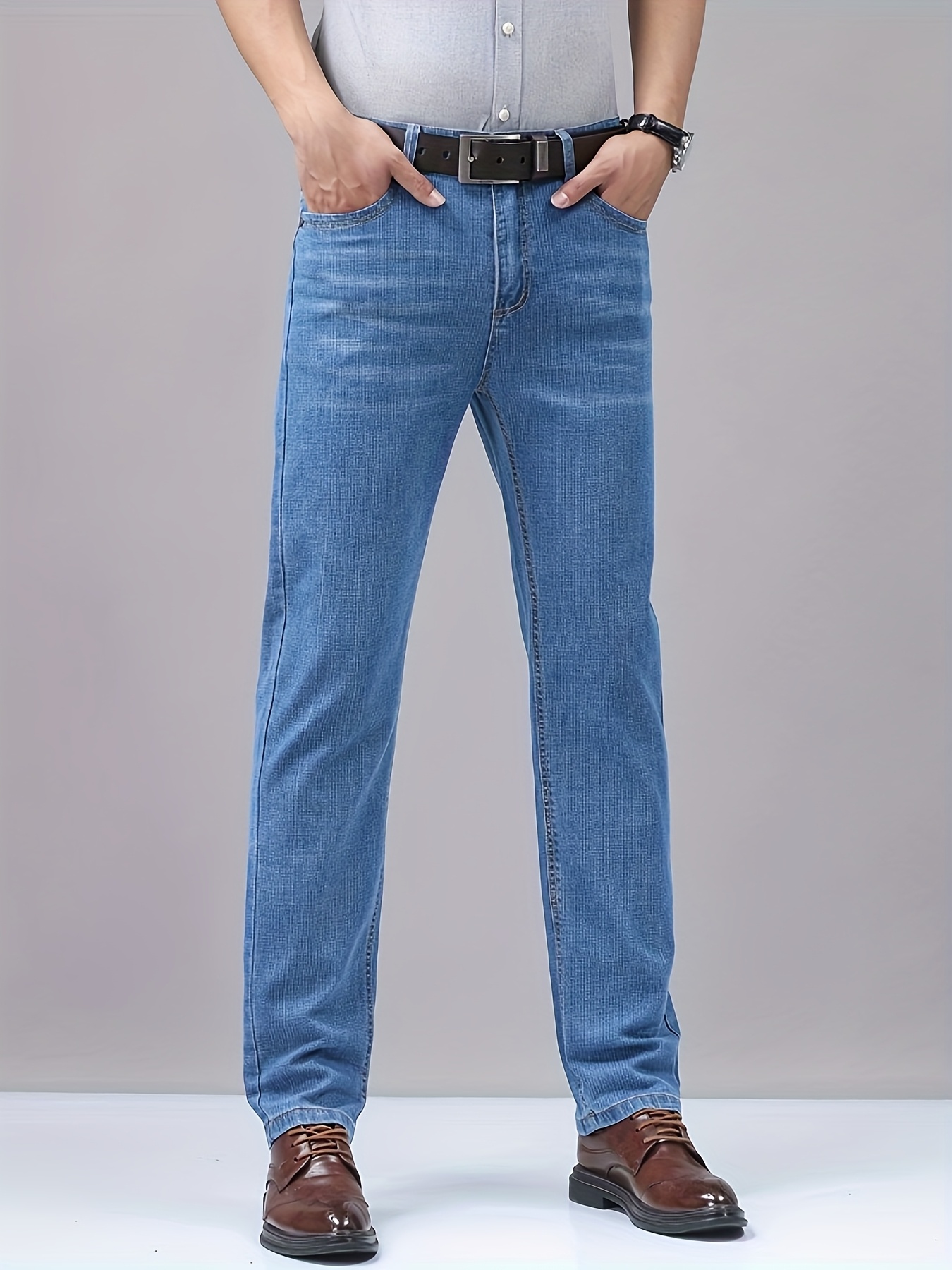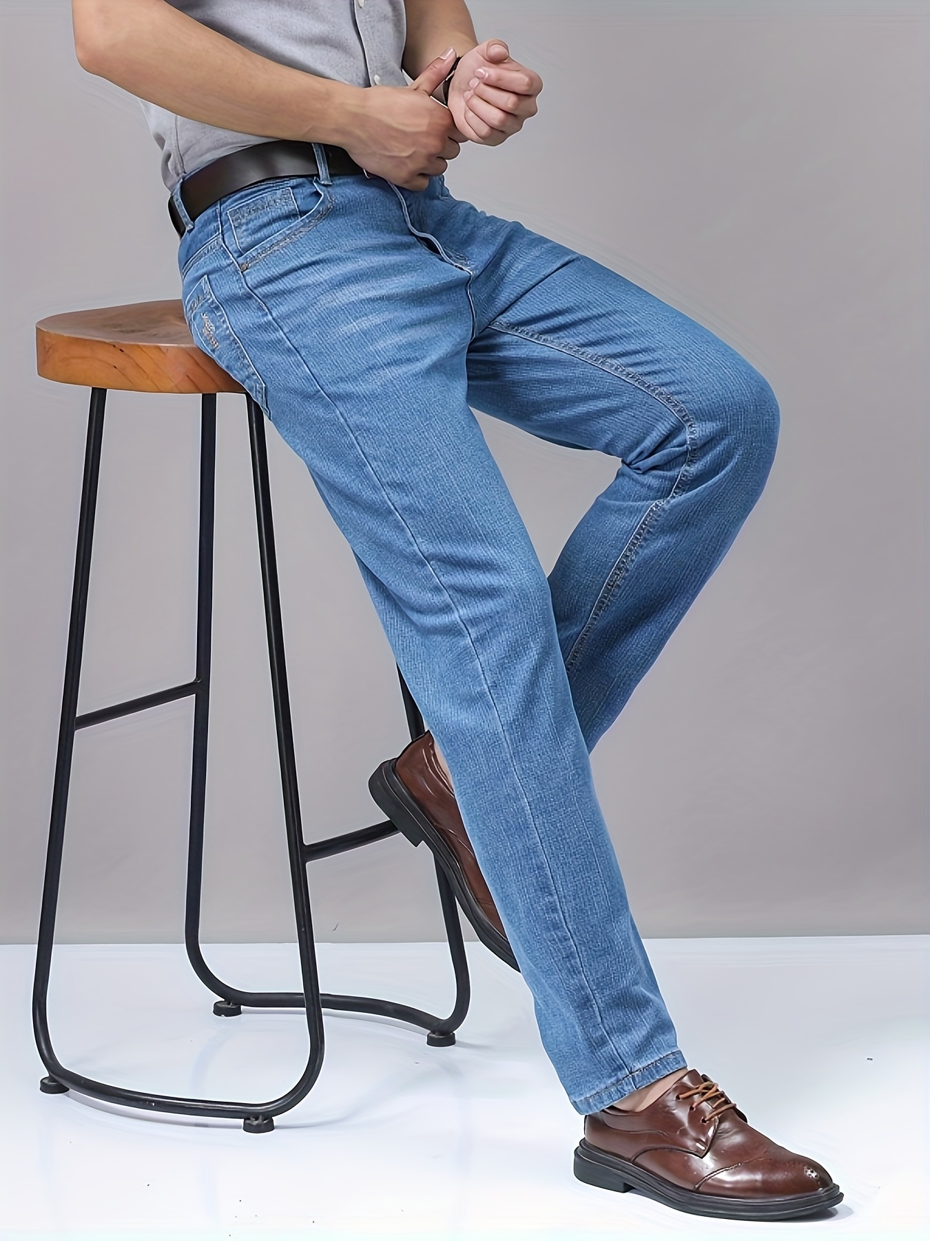 ارتقِ بإطلالتك اليومية والمهنية مع بنطال الدينيم الرجالي المطاطي ذي القصة المستقيمة. صُمم هذا البنطال ليمنحك مزيجاً مثالياً من الراحة الفائقة والأناقة الخالدة، مما يجعله القطعة الأساسية التي لا غنى عنها في خزانة ملابسك. سواء كنت في المكتب، أو في لقاء اجتماعي، أو تستمتع بنزهة في عطلة نهاية الأسبوع، فإنه يوفر لك مظهراً جذاباً وشعوراً بالانتعاش طوال اليوم، مع لمسة دينيم كلاسيكية تناسب جميع الأذواق.