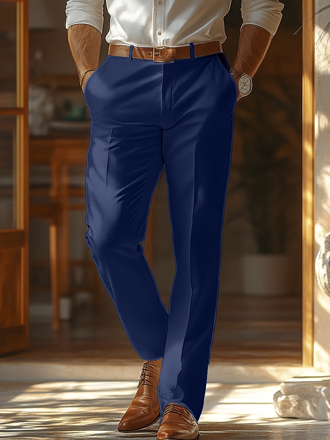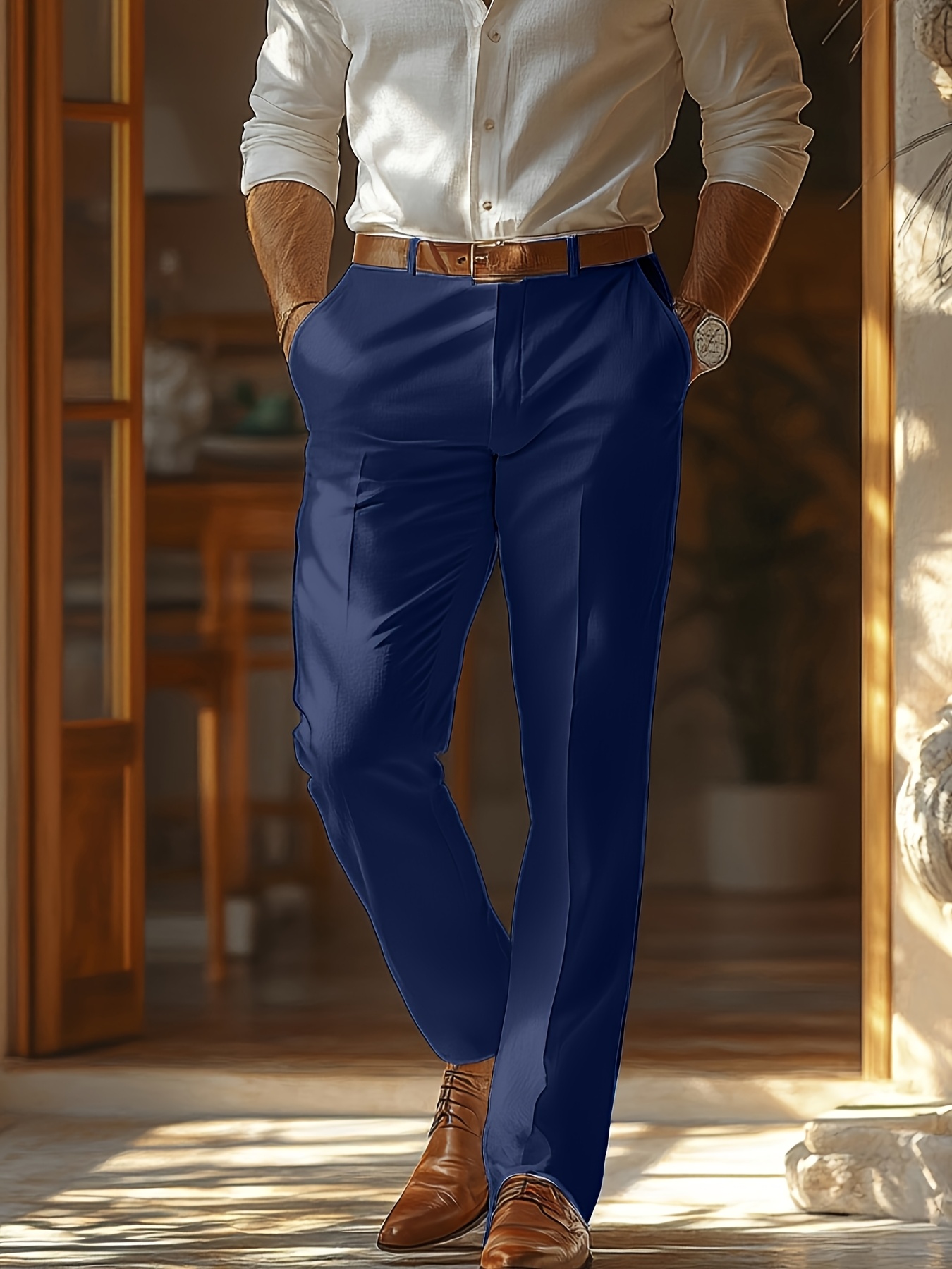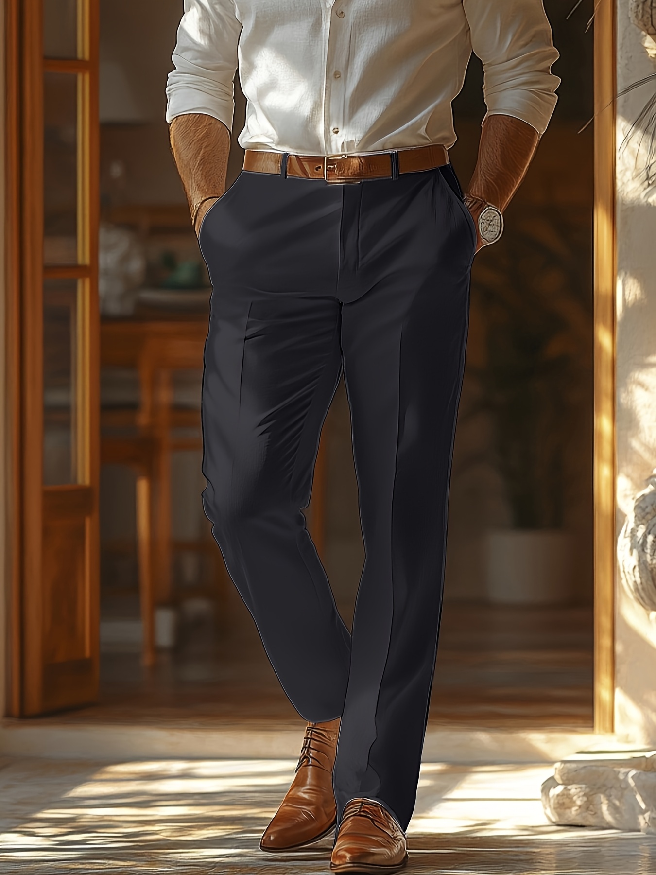 - تصميم أنيق بلون موحد: يتميز بلون سادة راقٍ يسهل تنسيقه مع مختلف القمصان والأحذية، ليمنحك إطلالة عصرية ومتكاملة تناسب جميع الأذواق والمناسبات.