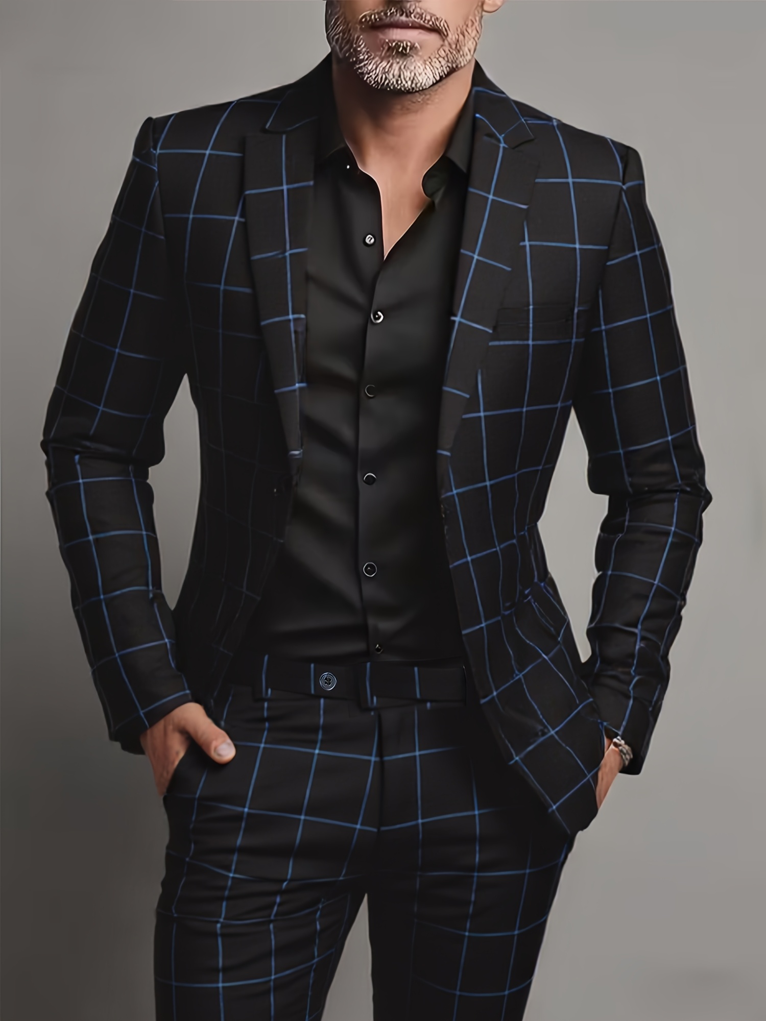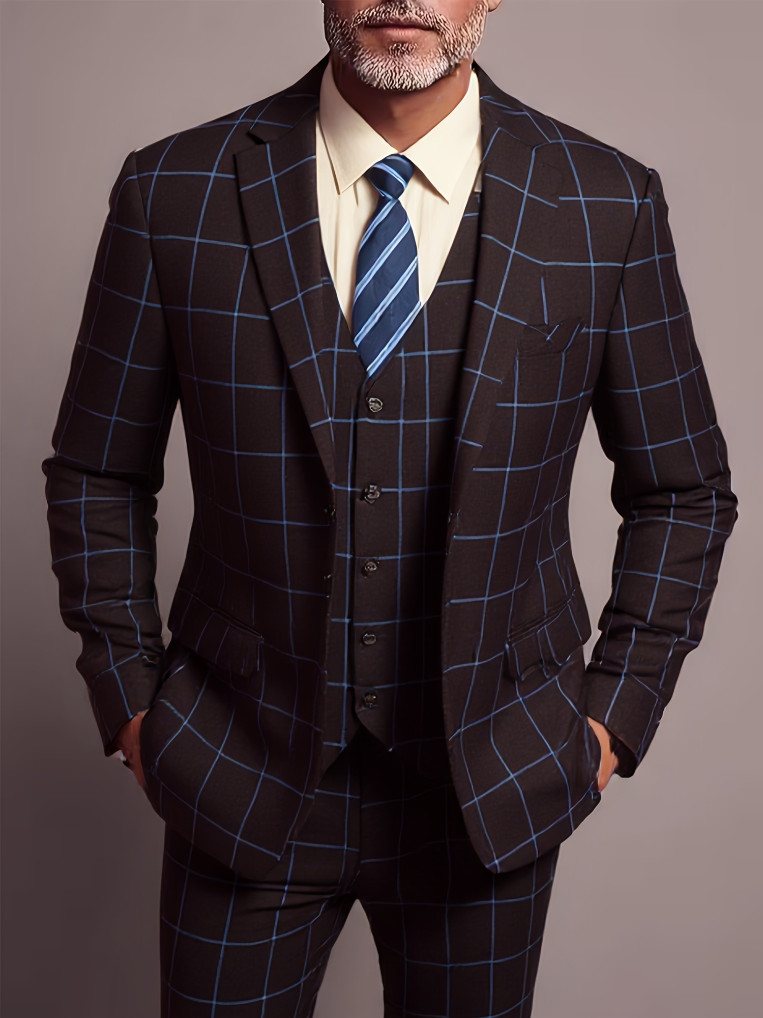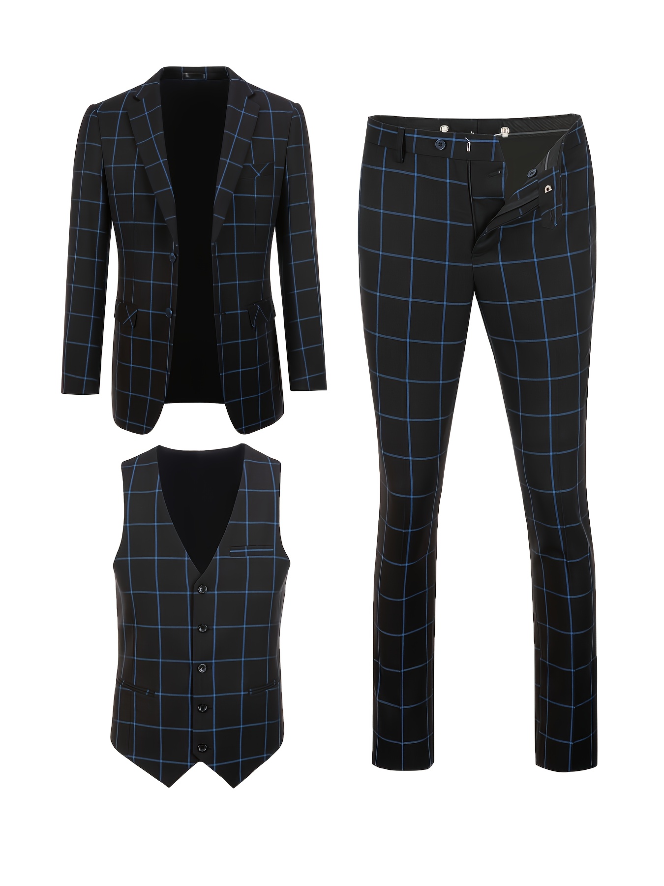 هل تبحث عن الإطلالة المثالية التي تجمع بين الأناقة العصرية والراحة الفائقة؟ قد وجدت ضالتك! نقدم لك طقم البدلة الرجالية الفاخر المكون من ثلاث قطع، المصمم خصيصاً للرجل الذي يقدر التميز ويحرص على ترك انطباع لا يُنسى في كل مناسبة. مع قصته النحيفة والمحددة، ونقشة المربعات الجذابة، أنت على موعد مع أسلوب يفيض بالثقة والرقي.