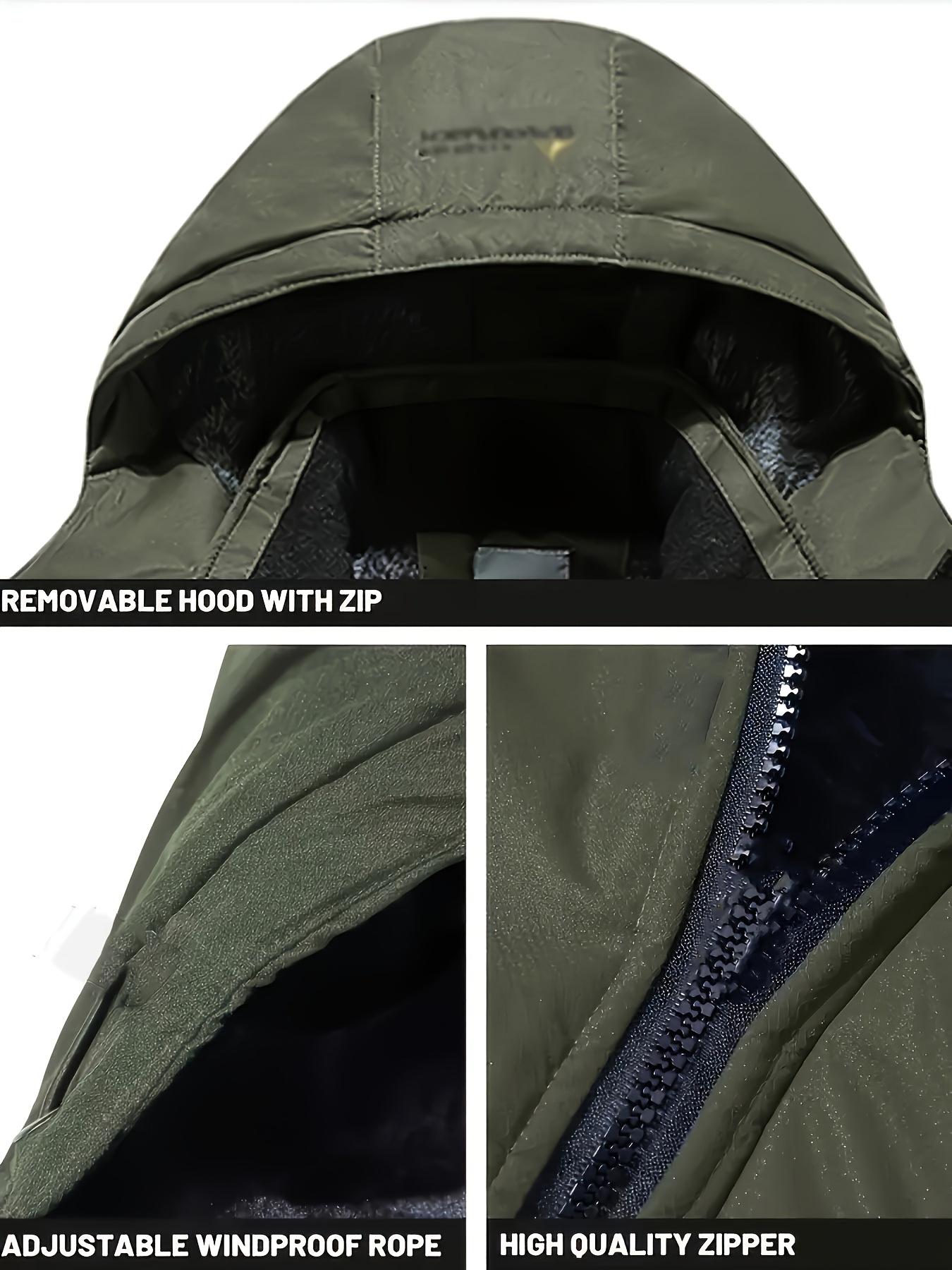 • غطاء رأس قابل للإزالة لمرونة لا متناهية: يتميز بغطاء رأس عملي قابل للإزالة، يمنحك خيارات متعددة لتخصيص مظهرك حسب الطقس أو المناسبة. ارتديه لحماية إضافية من الرياح والصقيع، أو انزعه لإطلالة أكثر أناقة وعصرية.