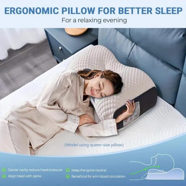 - دعم فائق للرقبة والعمود الفقري: مصممة لتوفير الدعم المثالي الذي تحتاجه رقبتك، سواء كنت نائماً على جانبك أو تبحث عن تخفيف لآلام الرقبة. تضمن لك استقامة صحيحة وراحة لا تضاهى لتستيقظ نشيطاً كل صباح.