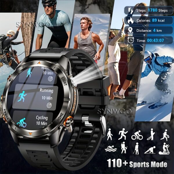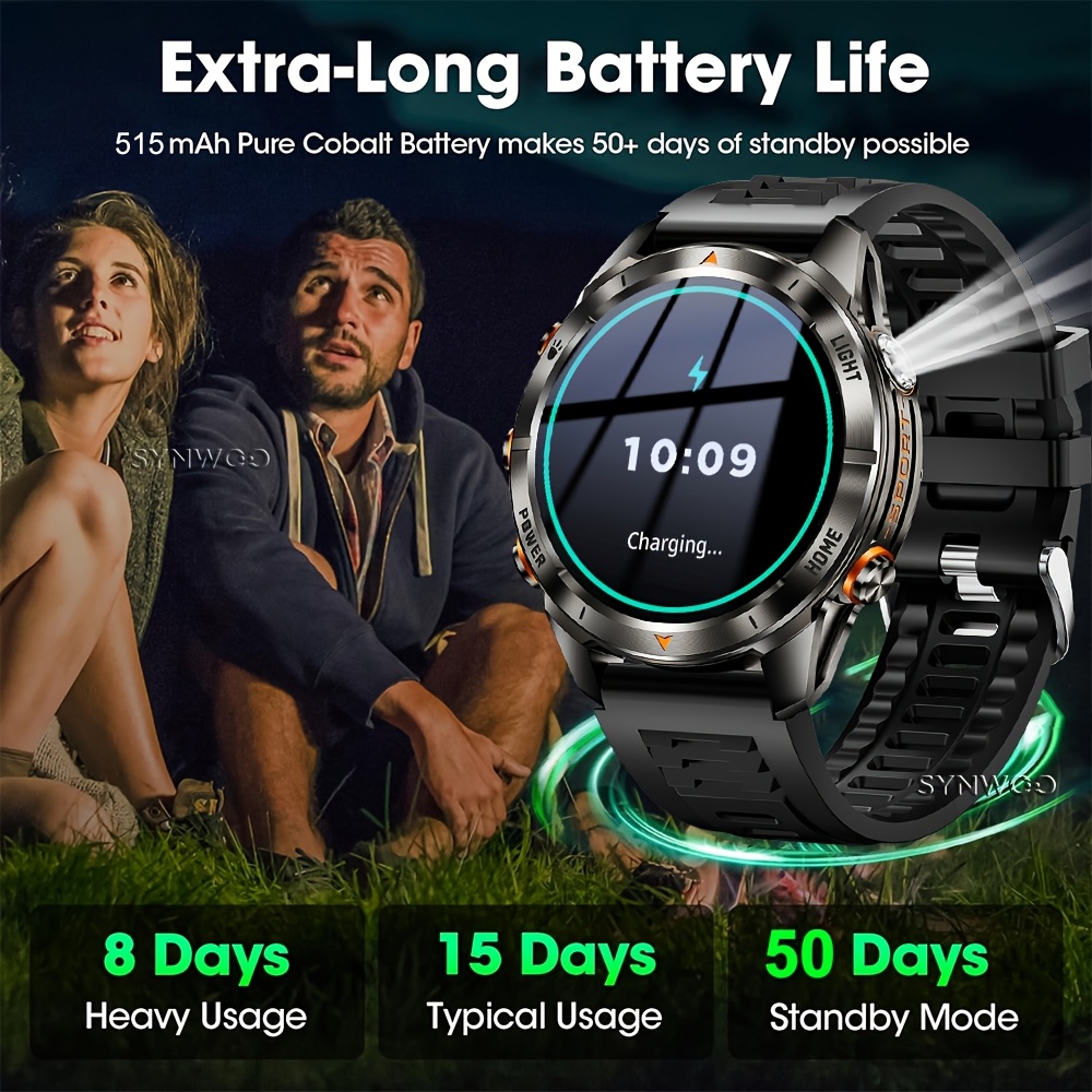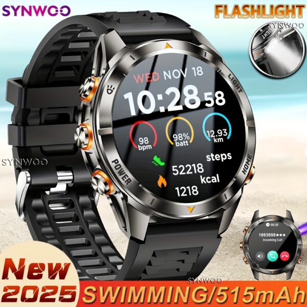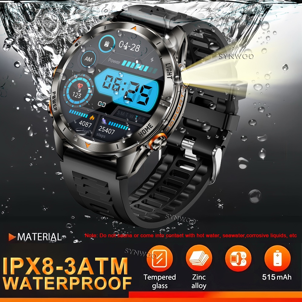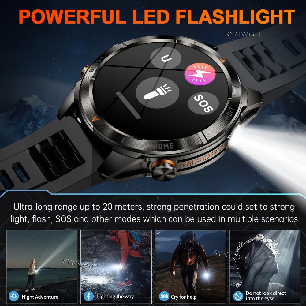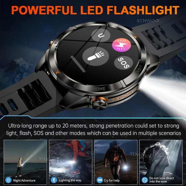 - مصباح يدوي LED مدمج: إضاءة قوية ومتوفرة دائمًا على معصمك، مثالية للطوارئ أو عند الحاجة لإضاءة سريعة في الظلام.