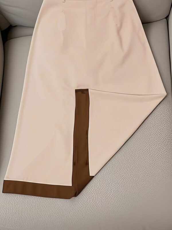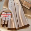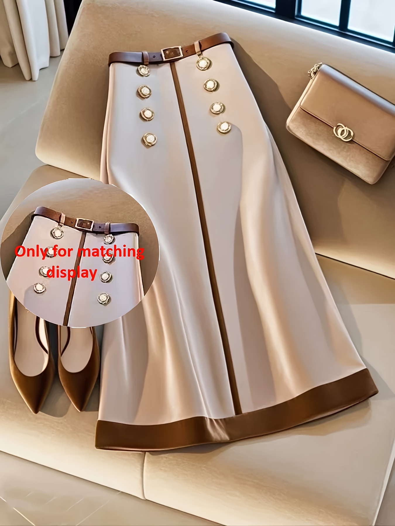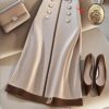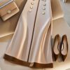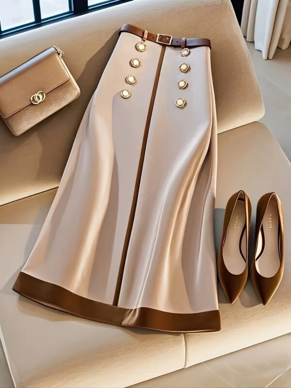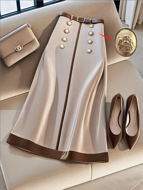 • صفان من الأزرار الأمامية: تفاصيل أنيقة بصفين من الأزرار تضفي لمسة كلاسيكية وعصرية وفاخرة على التنورة.