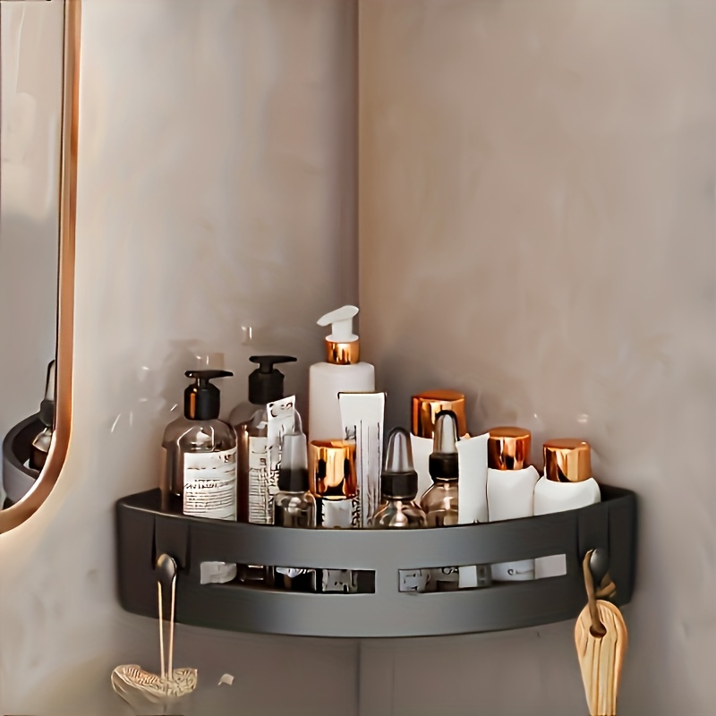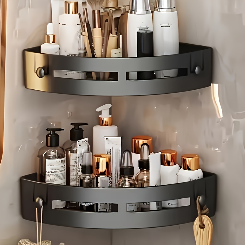 • تصميم زاوي مبتكر لتوفير المساحة: استفد من كل زاوية غير مستغلة في حمامك أو مطبخك. تصميمه المنحني والذكي يتناسب تماماً مع الزوايا، محولاً المساحات الضائعة إلى حلول تخزين عملية ومنظمة ببراعة وكفاءة.