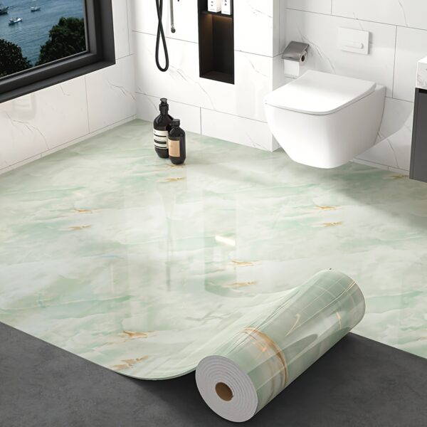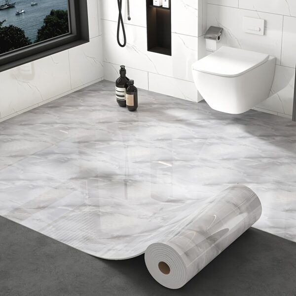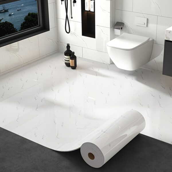 - مادة عالية الجودة ومقاومة: مصنوع من مادة الفينيل (PVC) المتينة، مما يجعله مقاوماً للماء والرطوبة والخدوش، ومثالياً للاستخدام في الحمامات والمطابخ والأماكن ذات الحركة الكثيرة، وسهل التنظيف والصيانة.