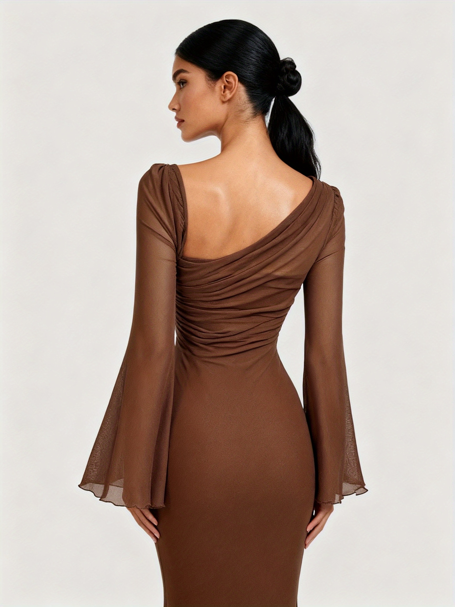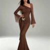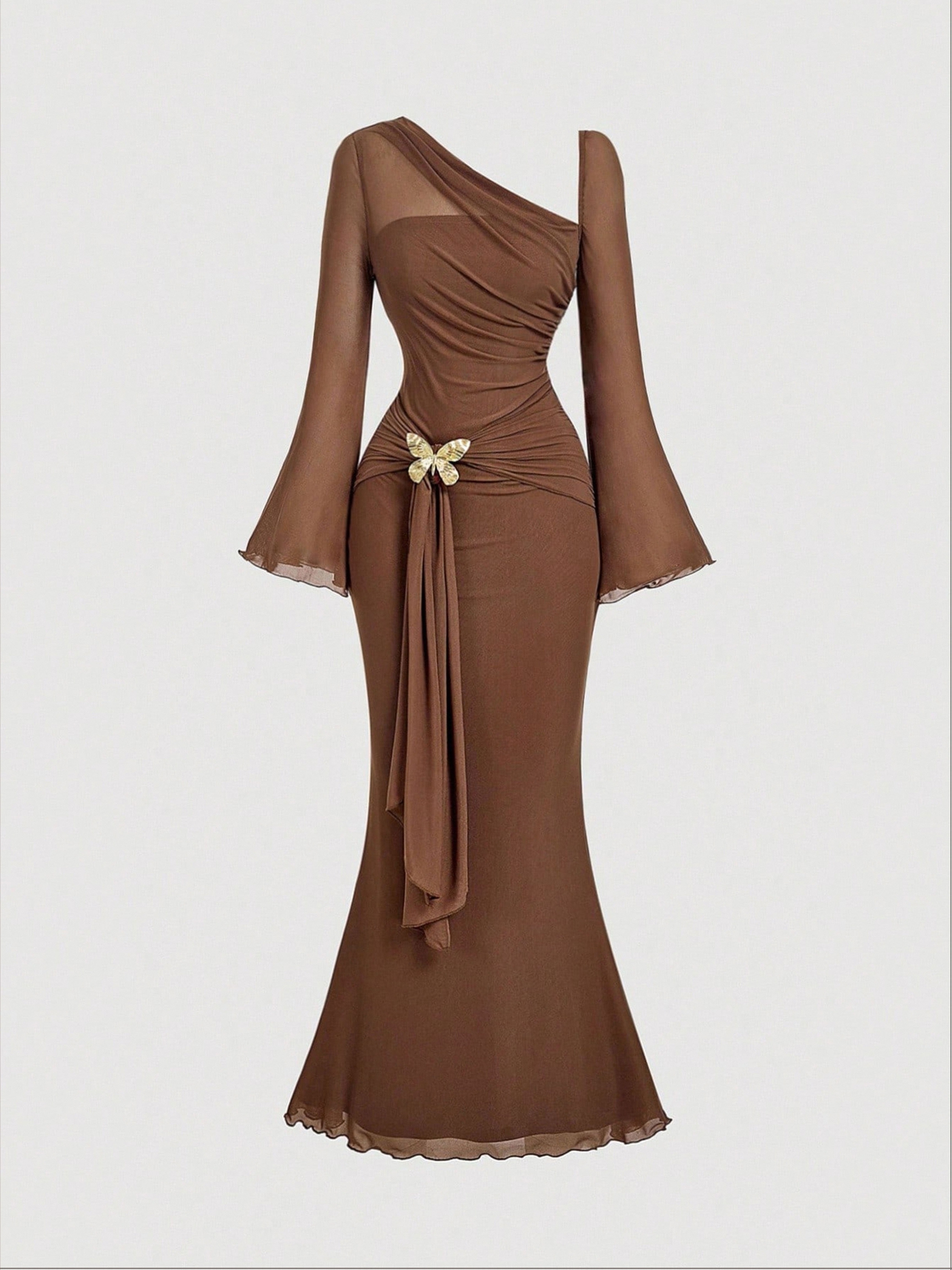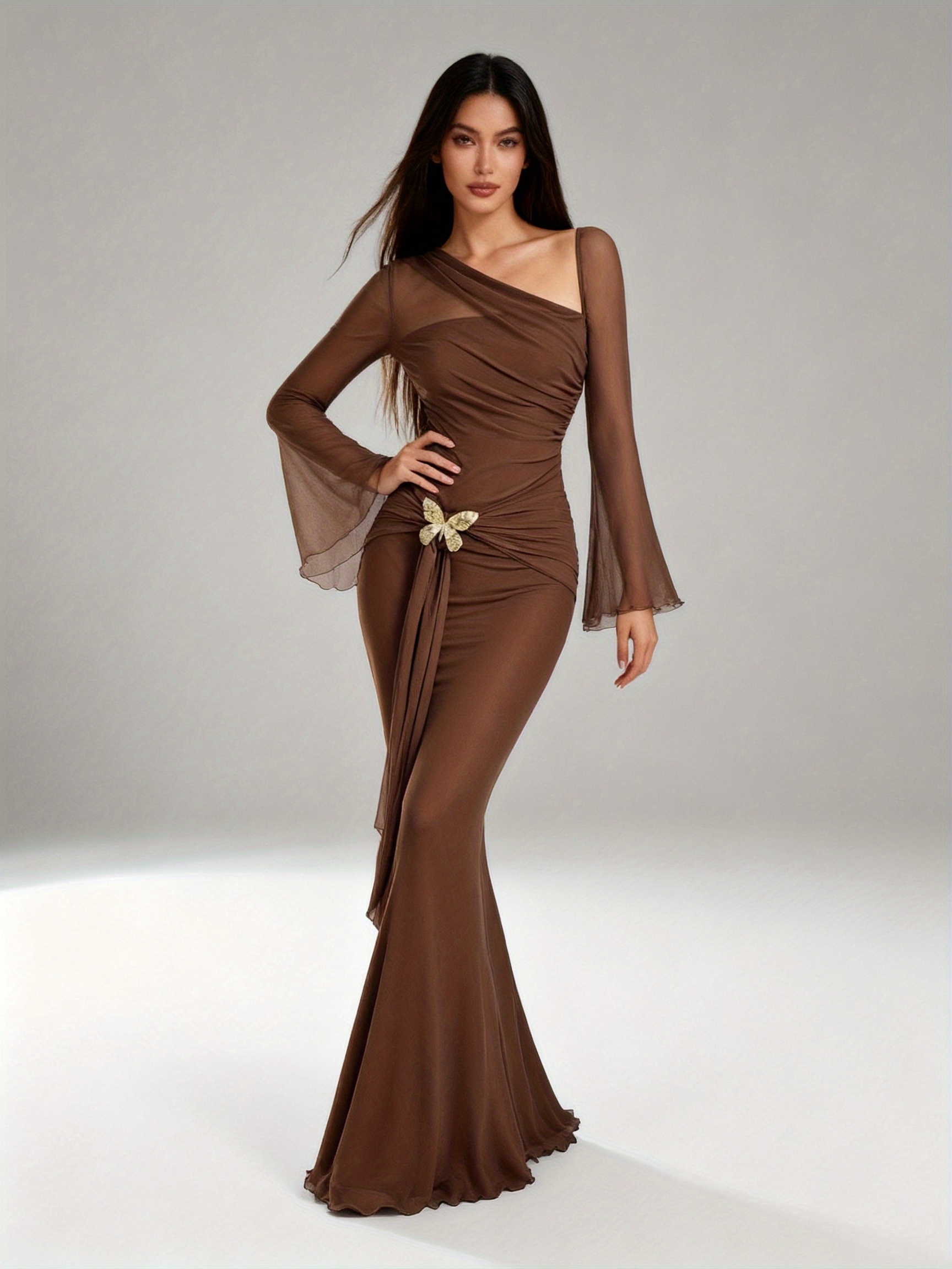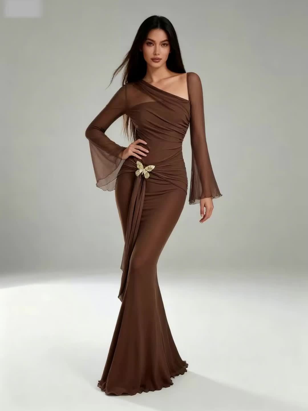 فستان OrchidLAN الساحر: أناقة حورية البحر بكتف واحد وتفاصيل جرس رائعة
