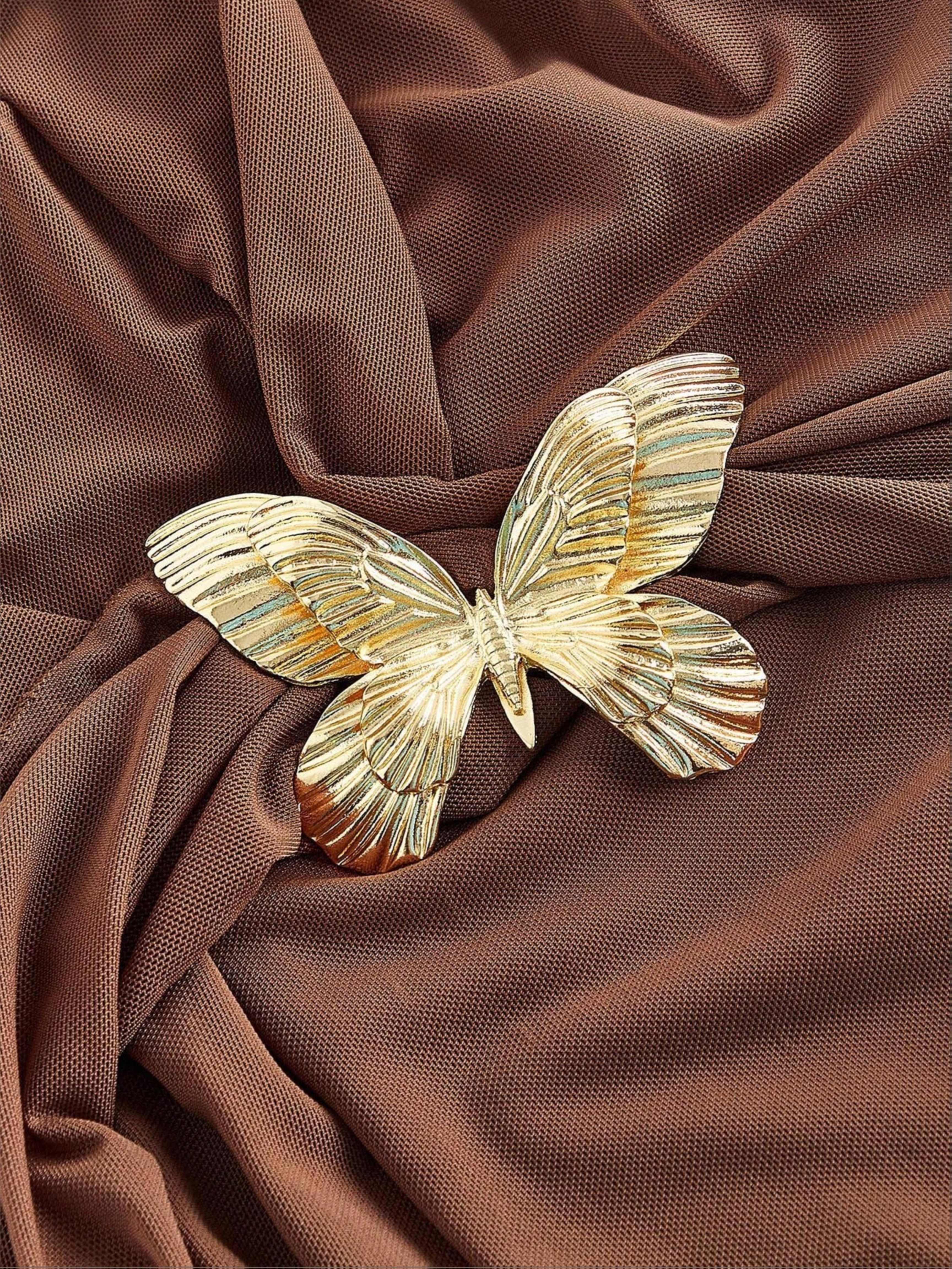 • تفاصيل شبكية أنيقة (Contrast Mesh): تضفي عمقاً وجاذبية للتصميم، مع إضفاء لمسة فنية راقية تبرز تفاصيل الفستان.