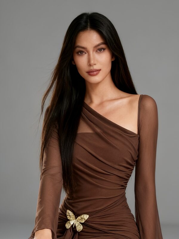 • تصميم كتف واحد غير متماثل: يضفي لمسة جريئة وعصرية، مع قصة رقبة فريدة تبرز جمالك وتمنحك إطلالة مميزة.
