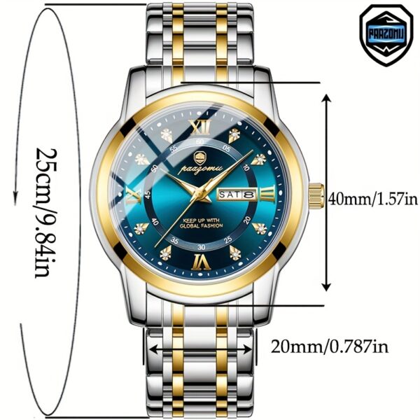 - دقة متناهية: بفضل حركة الكوارتز الموثوقة، ستضمن لك ساعة PAAZOMU دقة متناهية في عرض الوقت، لتبقى على الموعد دائماً ودون أي تأخير.