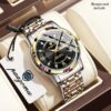 - تصميم فاخر وعصري: مينا دائري أنيق يجمع بين فخامة الساعات الكلاسيكية ولمسة عصرية جريئة، لتناسب اجتماعات العمل الهامة ومناسباتك الخاصة على حد سواء.