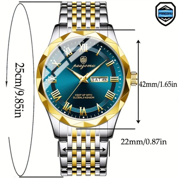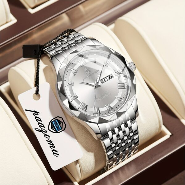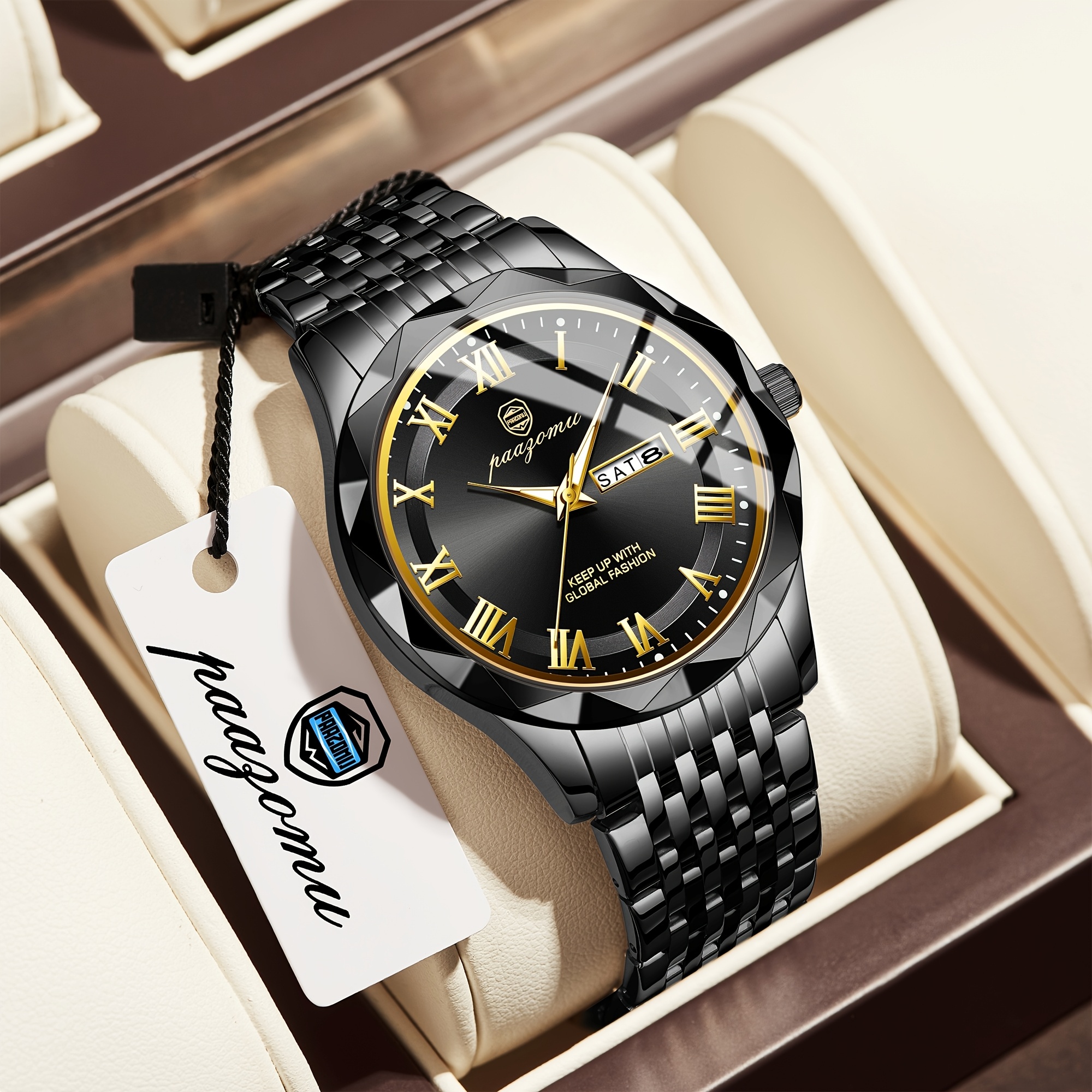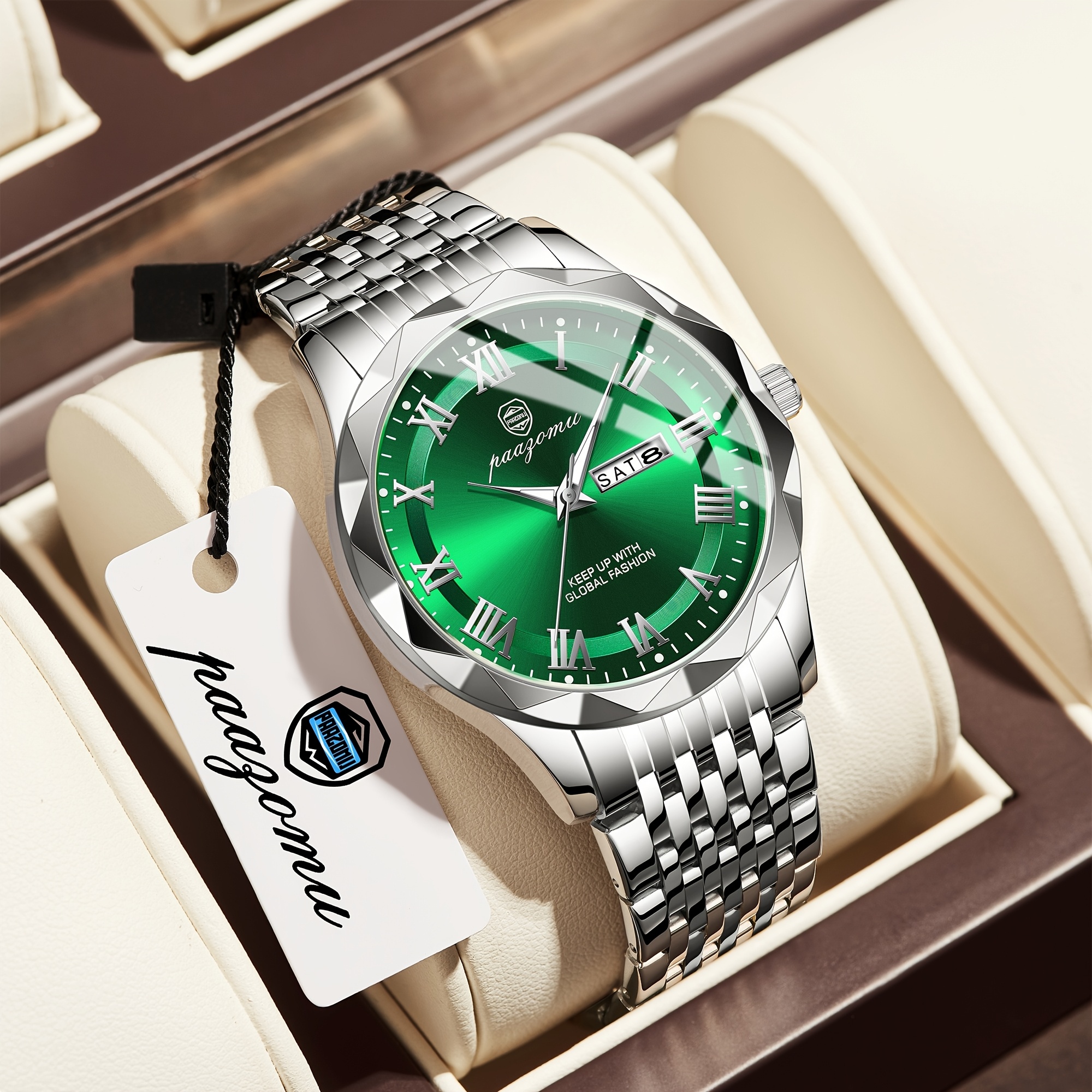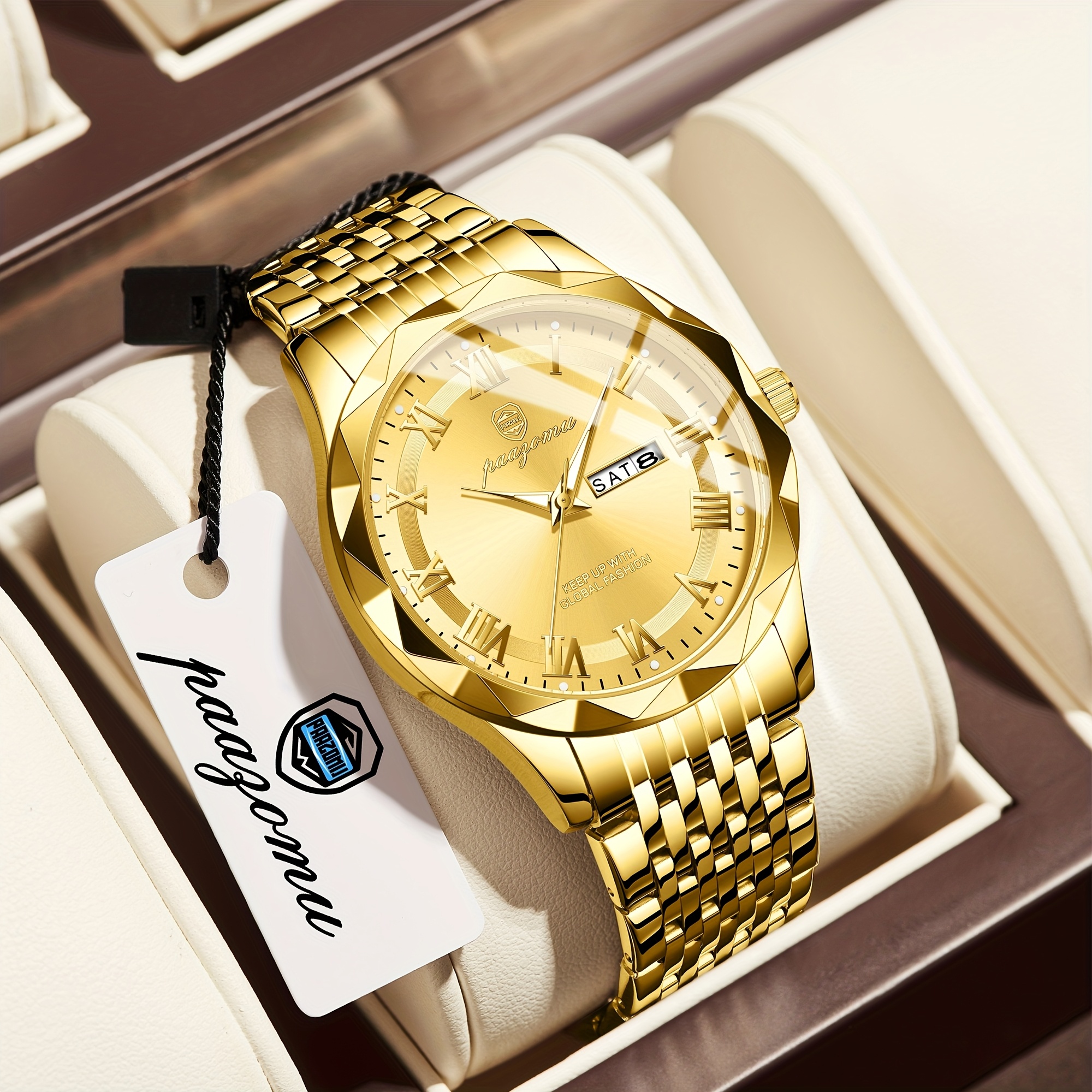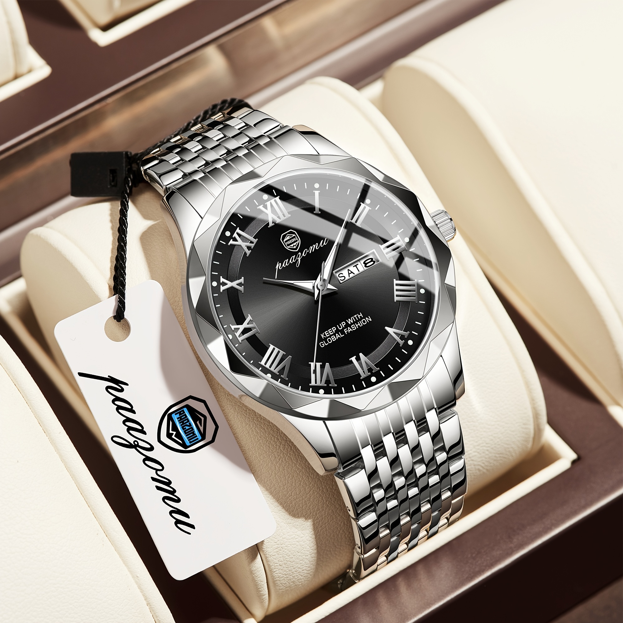 لكل رجل يبحث عن التميز، لكل من يقدّر الأناقة والدقة في أدق التفاصيل، نقدم لك ساعة PAAZOMU الرجالية. تحفة فنية مصممة لتواكب إيقاع حياتك العصرية، وتضيف لمسة من الرقي الخالد إلى إطلالتك اليومية. مزيج مثالي يجمع بين الفخامة والوظائف العملية، لتكون رفيقك الأنيق في كل مكان وزمان.