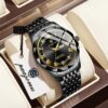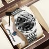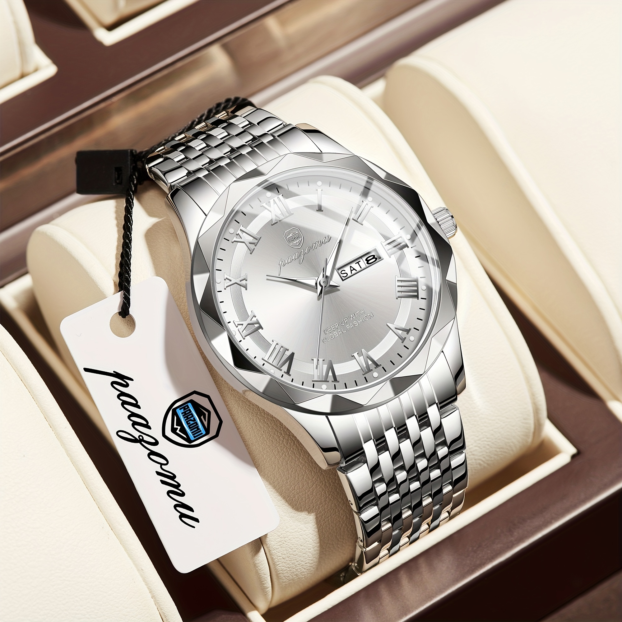 - جودة الفولاذ الفائقة: مصنوعة بالكامل من الفولاذ المقاوم للصدأ عالي الجودة للسوار والعلبة، مما يضمن متانة استثنائية ومظهراً لامعاً يدوم طويلاً، لمواجهة جميع تحديات يومك بأناقة.
