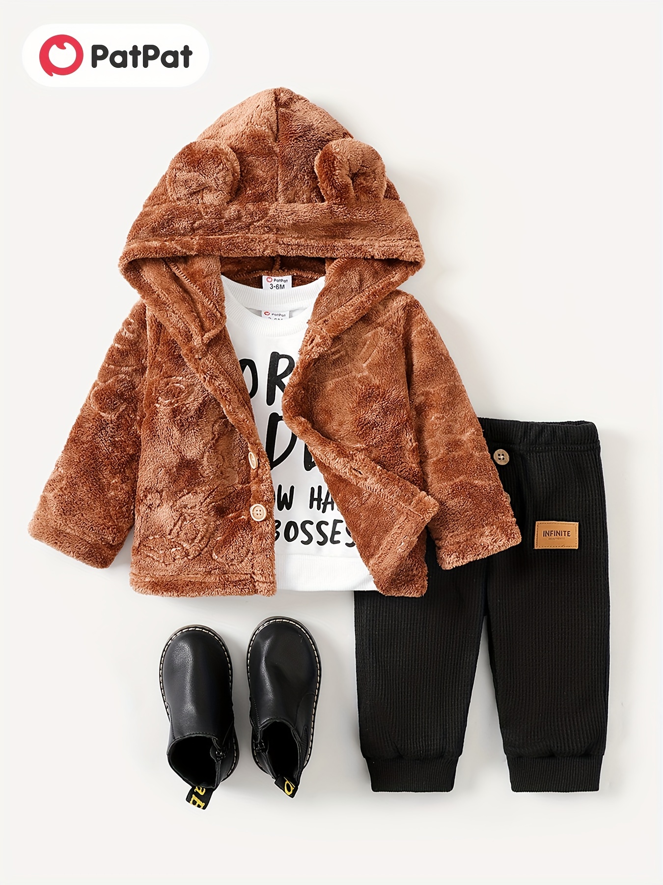 - خامة فاخرة ودافئة: صُنع هذا المعطف بالكامل من البوليستر عالي الجودة بنسبة 100%، ليمنح طفلك دفئًا استثنائيًا وملمسًا ناعمًا ولطيفًا على البشرة الحساسة، مما يجعله مثاليًا لأيام الشتاء الباردة.