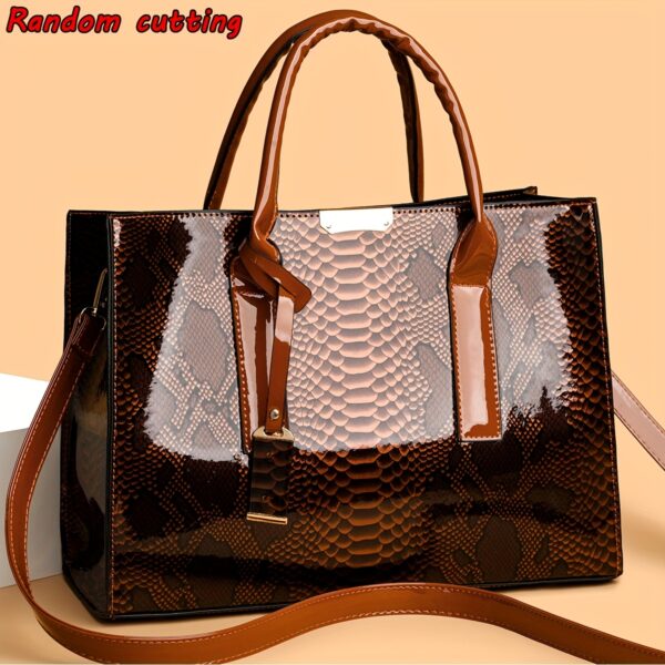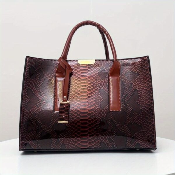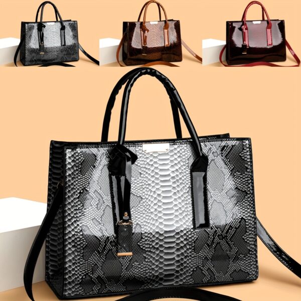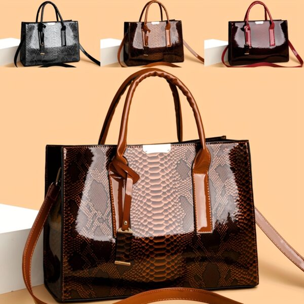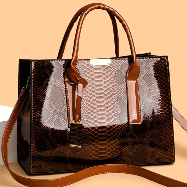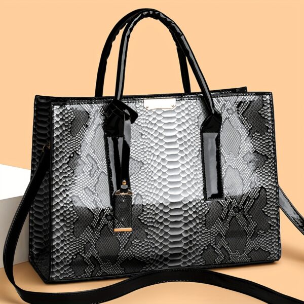• تصميم فريد وجذاب: تتميز بنقشة جلد التمساح الصناعي الفاخرة التي تضفي لمسة من الرقي والفخامة، مما يجعلها مثالية للمرأة العصرية التي تبحث عن التميز.