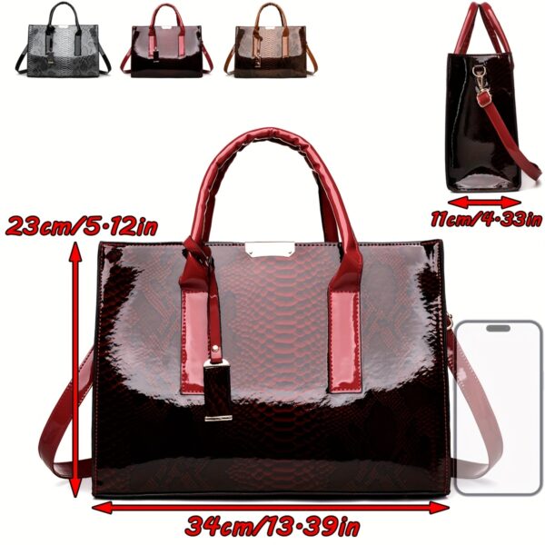 • عملية ومتعددة الاستخدامات: حقيبة كبيرة تتسع لجميع مستلزماتك اليومية، مثالية للتسوق، العمل، أو أي مناسبة خاصة. يمكن استخدامها كحقيبة يد أو حقيبة كتف بفضل الحزام القابل للفصل.